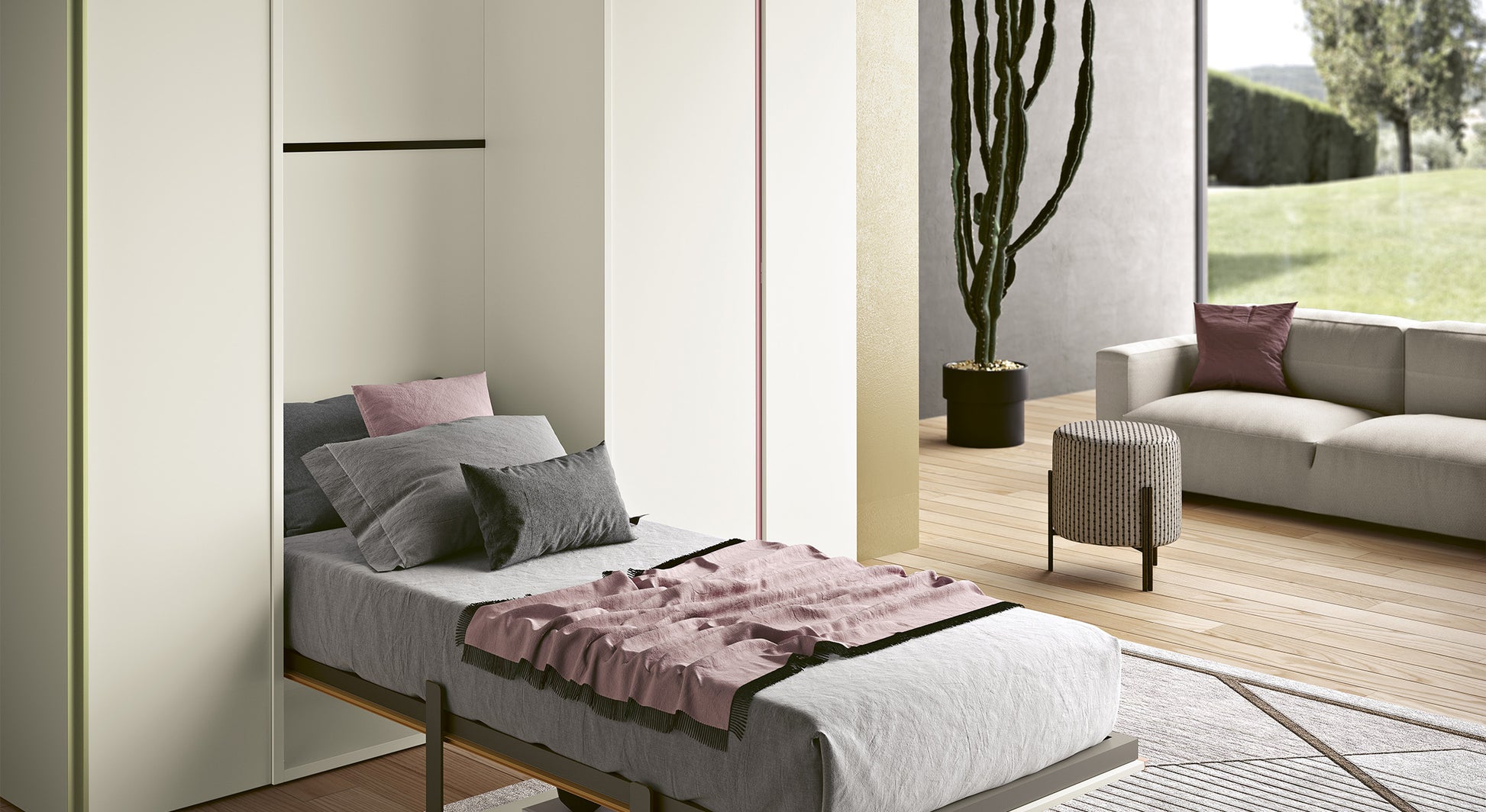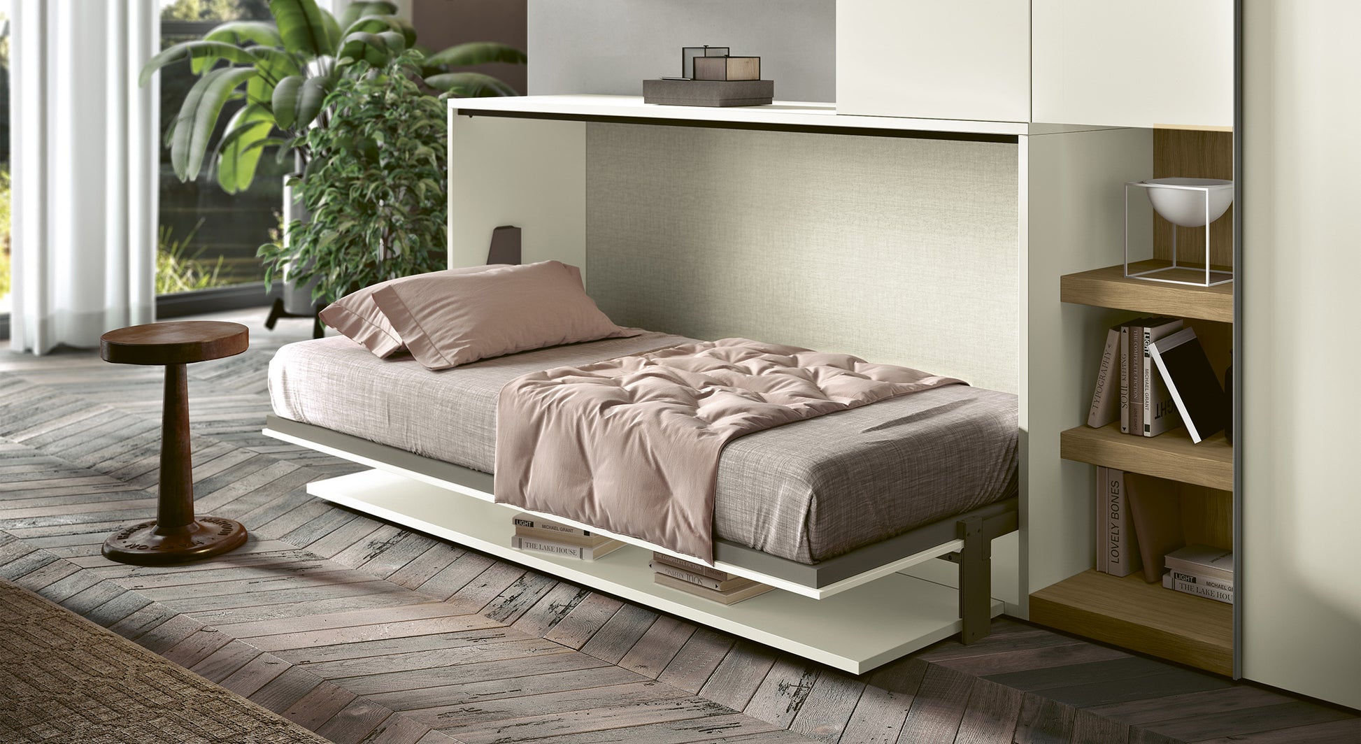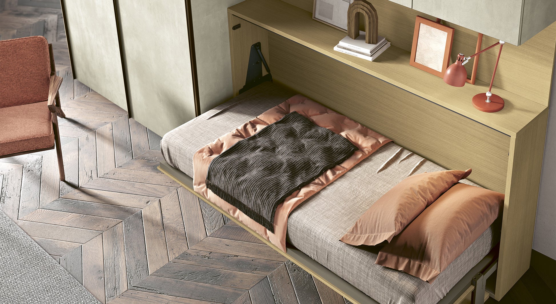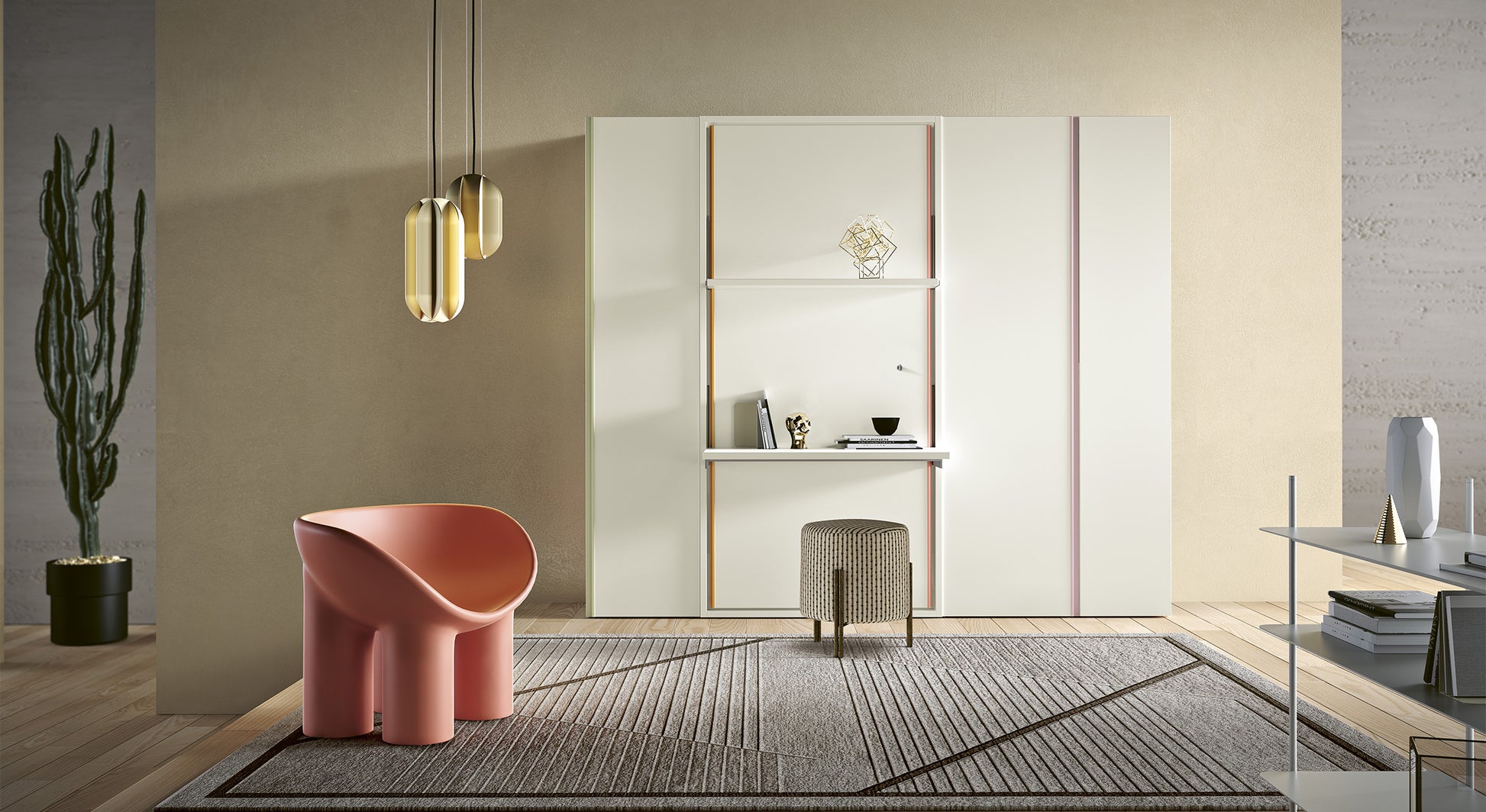 With the Lucy Children's Desk Designer Wardrobe Bed, rethink the interior of your child's bedroom by combining a workspace and a rest area. With its Italian design, your foldaway wardrobe bed will add character to your interior. Built to last: this model comes with a 10-year warranty. (Photo not contractually binding)