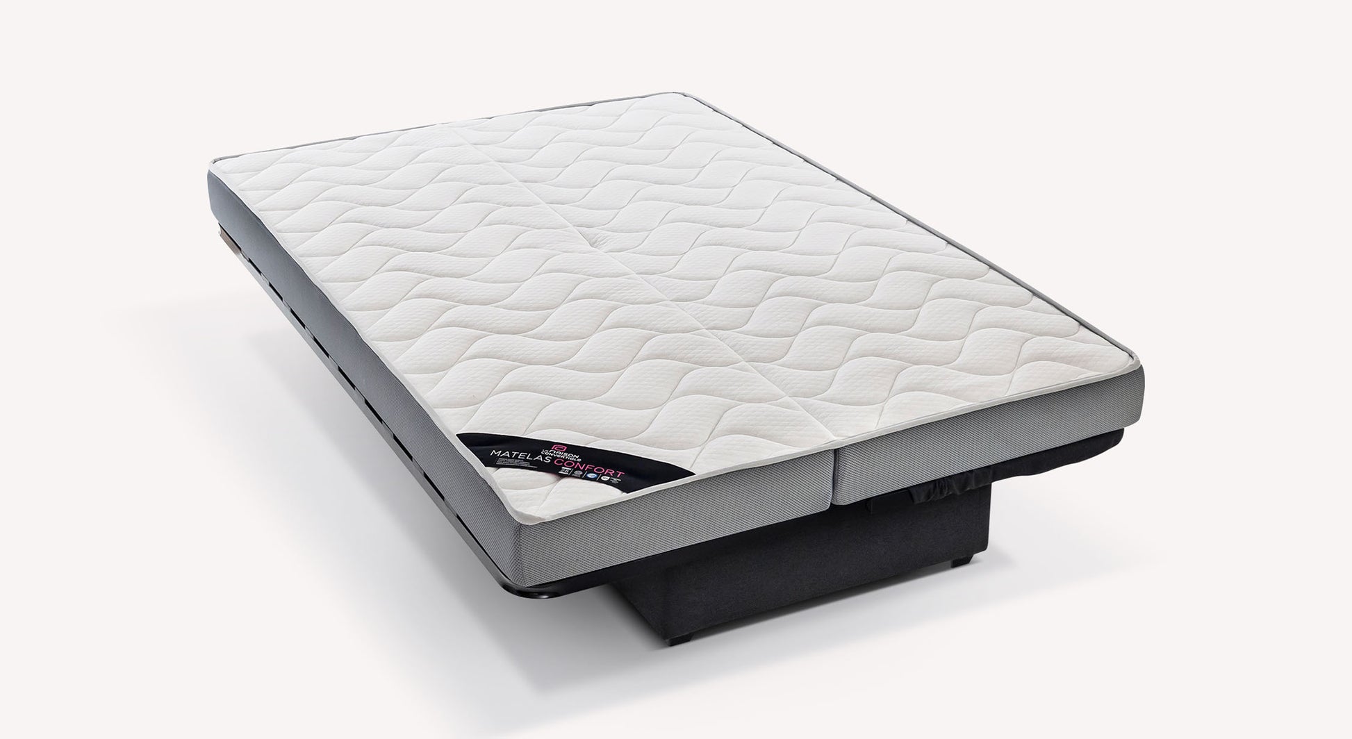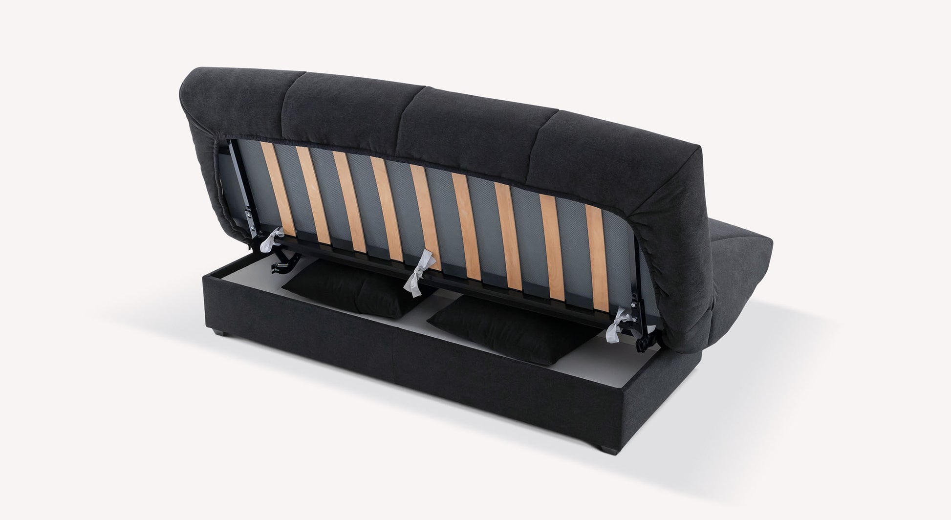 With its solid fir frame, the MONTRÉAL sofa bed impresses with its simplicity and sleek design, making it easy to integrate into any interior style. Available in several colors, it comes with two 40x60 cm cushions and is equipped with a 9-slat birch base for greater comfort and durability.