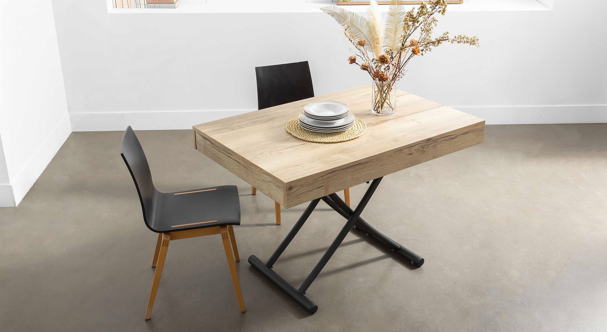 Meals with family or friends will be convivial with the BOSTON extendable lift table. Its elegant lines will charm you. This model adapts just as well to a warm dining room as to a trendy and functional kitchen. "The BOSTON table, the ideal place to fold your Massachaussettes".