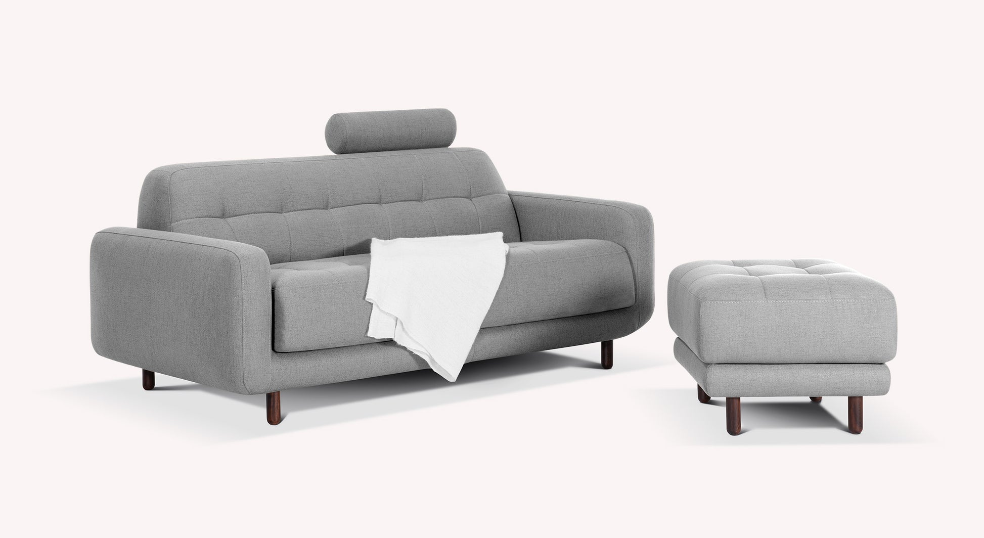 The Clark sofa is available in more than 500 variations of materials (fabric, velvet, terry and leather) and colors for customization that will best suit your interior.
