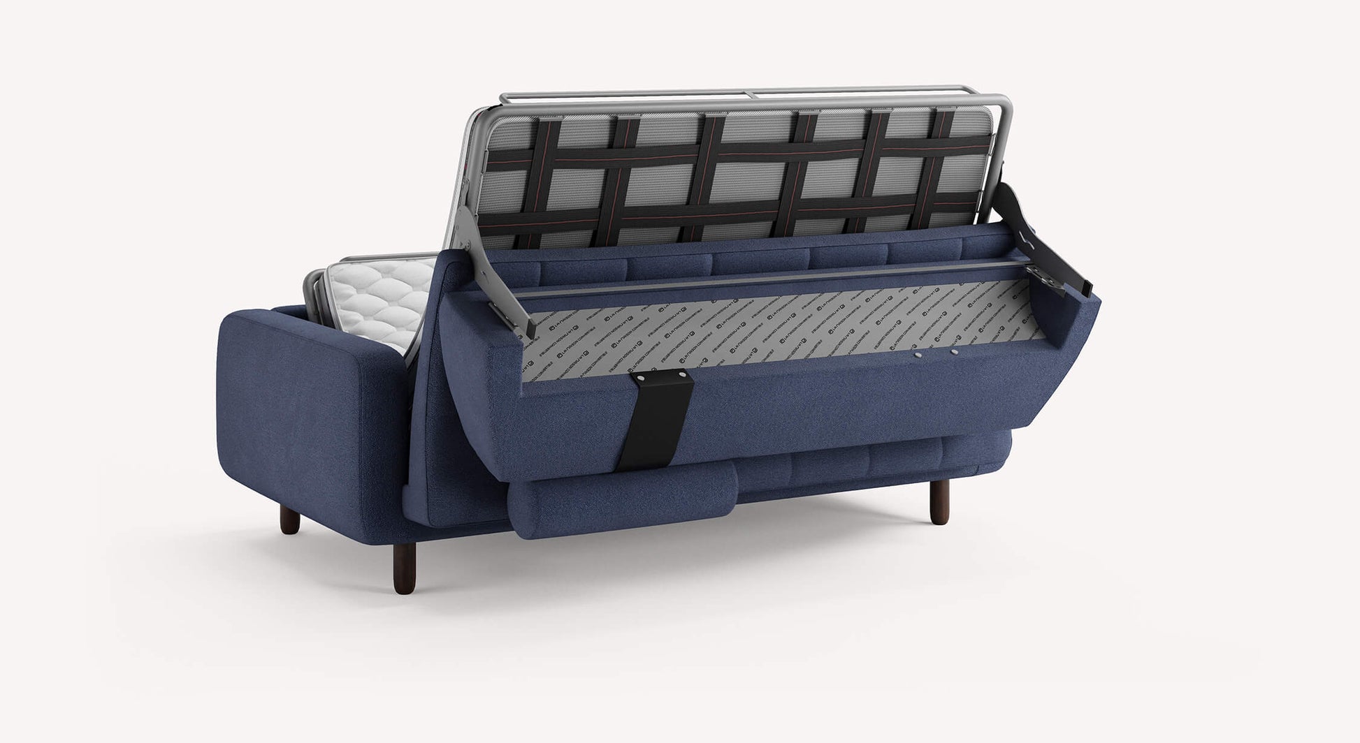 Nothing is more satisfying than using this sofa every day, both for its seating comfort during the day and for its sleeping comfort at night. Its mattress is there to give you the best nights, but you can also choose your own mattress in store from our range of Grand Comfort mattresses. The CLARK convertible sofa is therefore not a simple extra bed but indeed a real designer sofa bed for everyday sleeping.