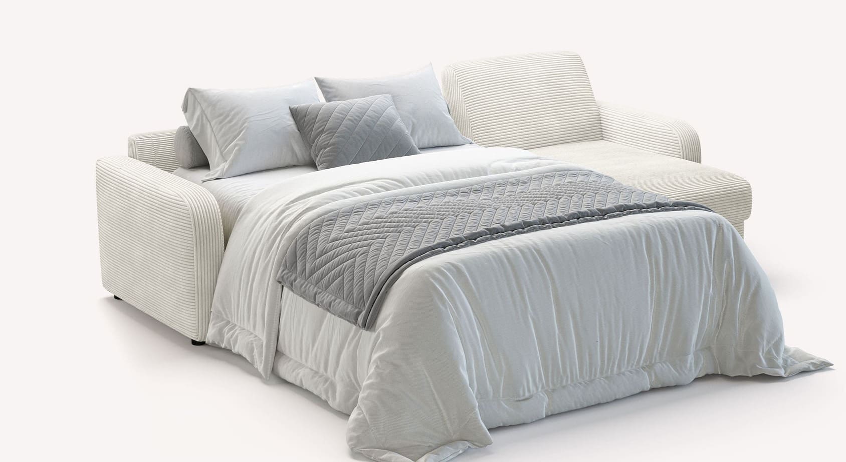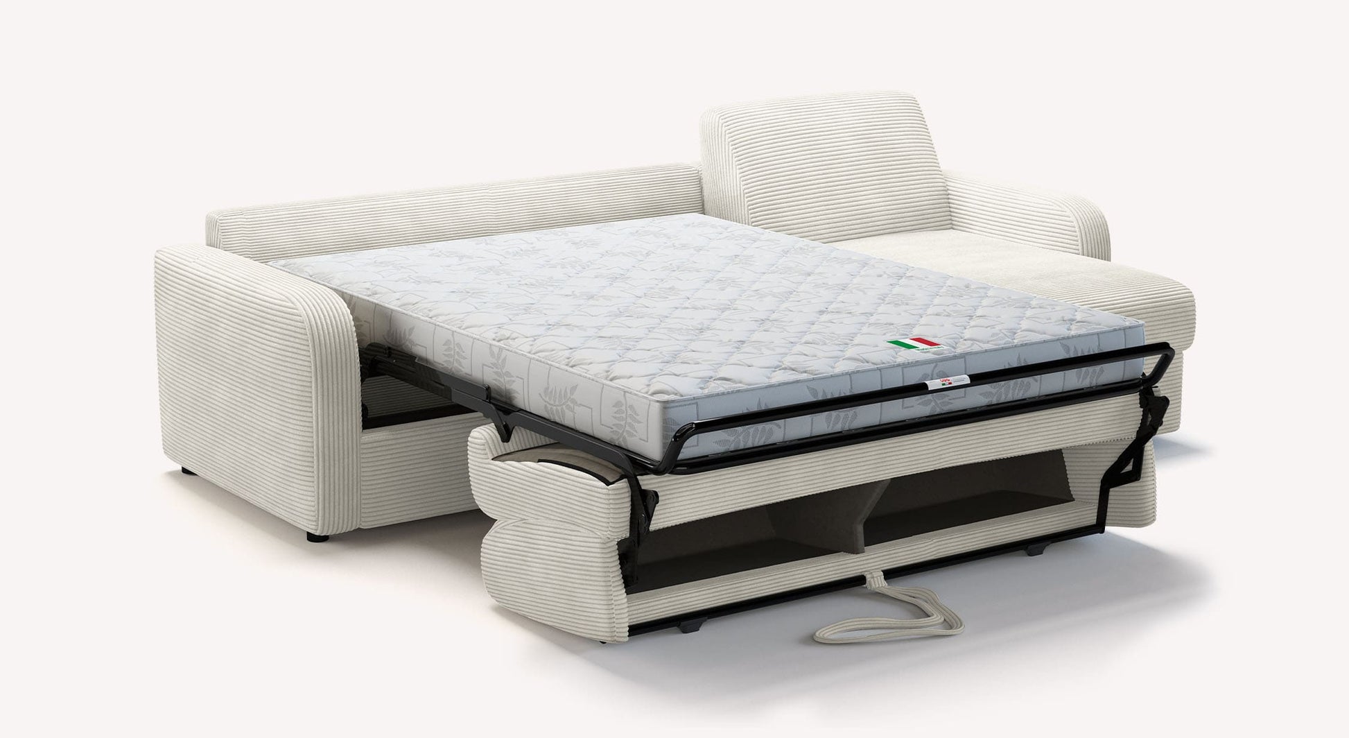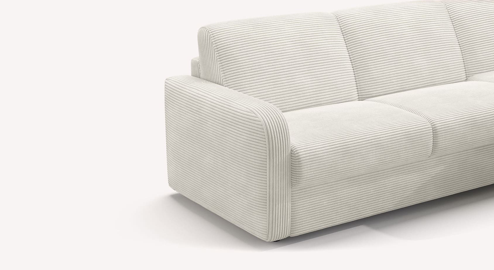 Make way for the CLINT Angle, a reversible sofa bed with a sleek style, designed to enhance your home. Its sturdy poplar and fir frame guarantees strength and longevity, while its Grecale mechanism makes it easy to open for effortless everyday use. This model, with its elegant lines, blends perfectly with any decor.