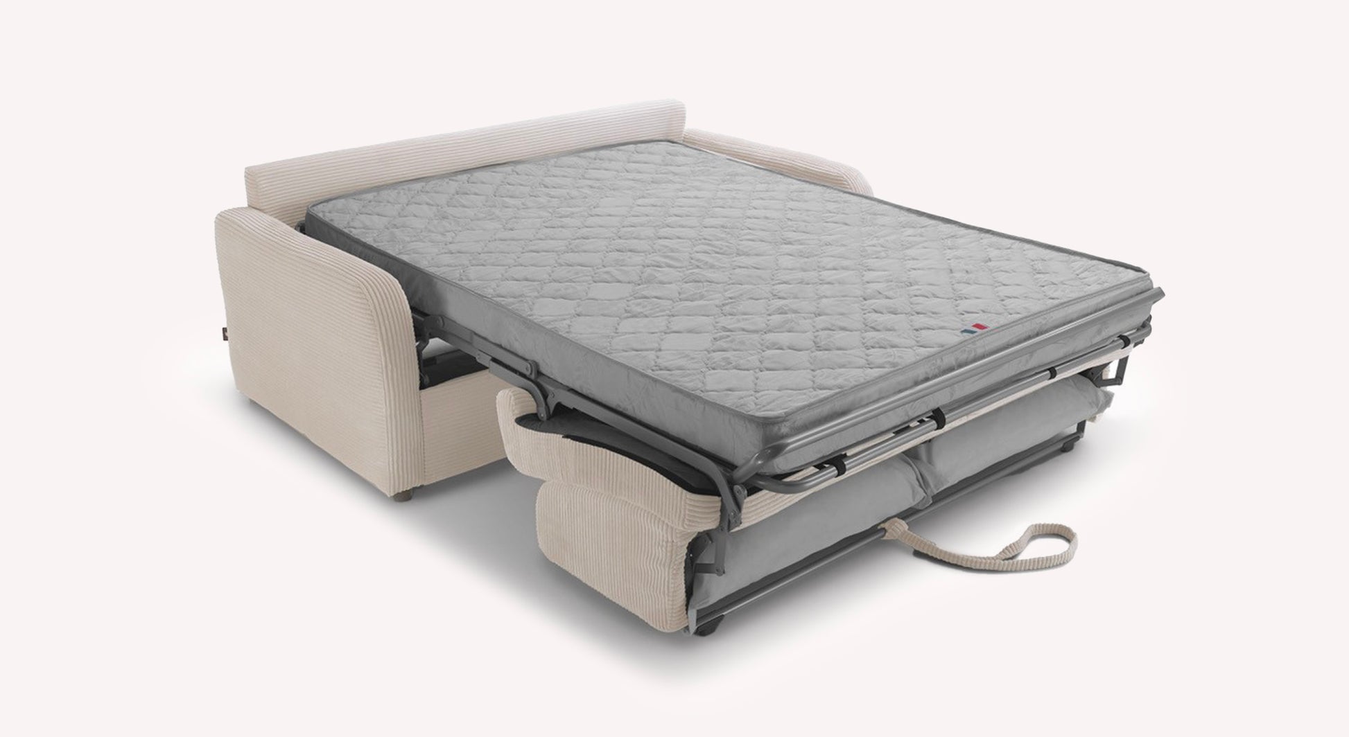 Le système de mécanique Rapido permet de passer du mode assise au couchage en quelques secondes seulement, sans avoir besoin de retirer les coussins. Une solution pratique et fluide au quotidien.