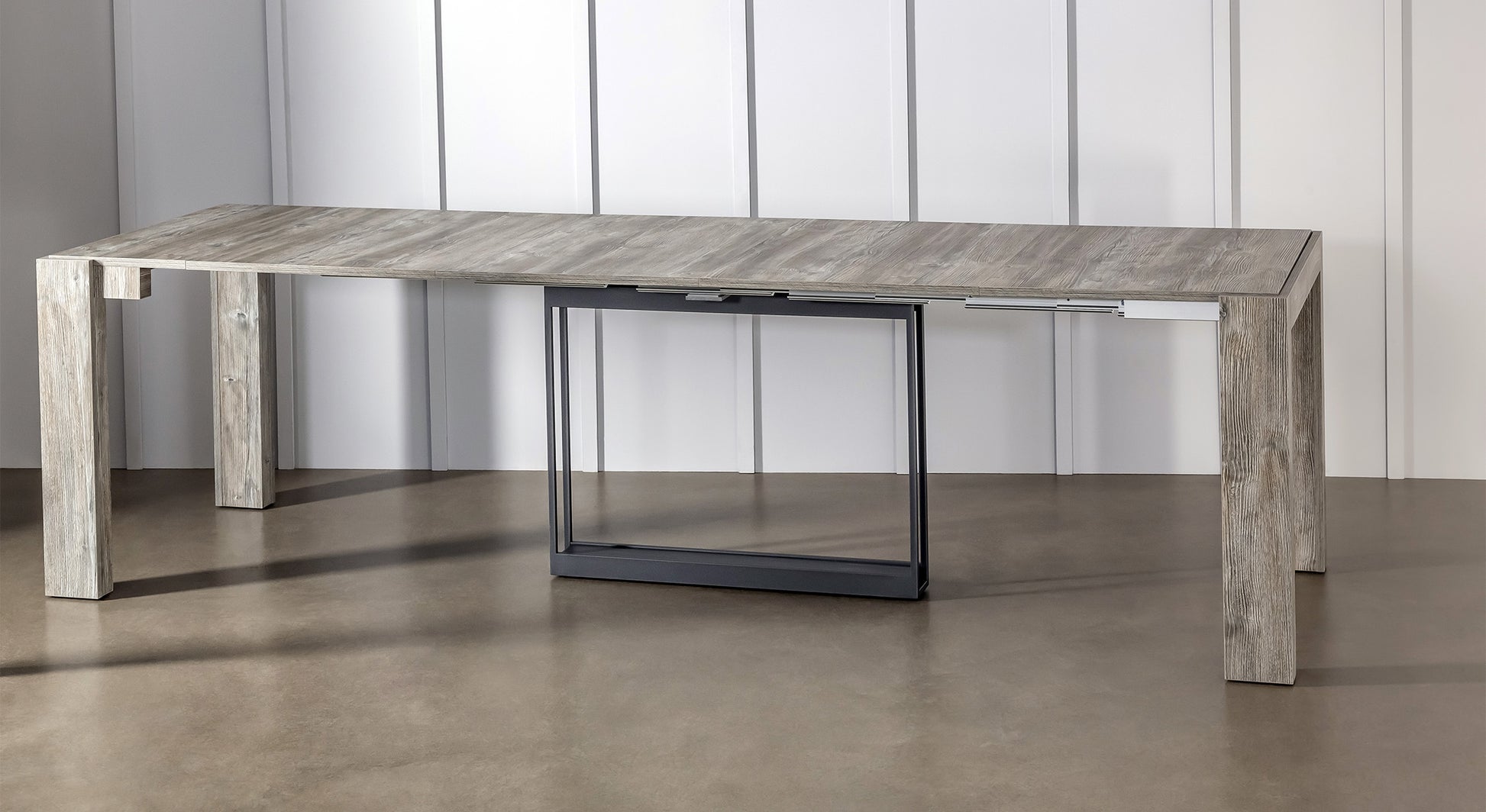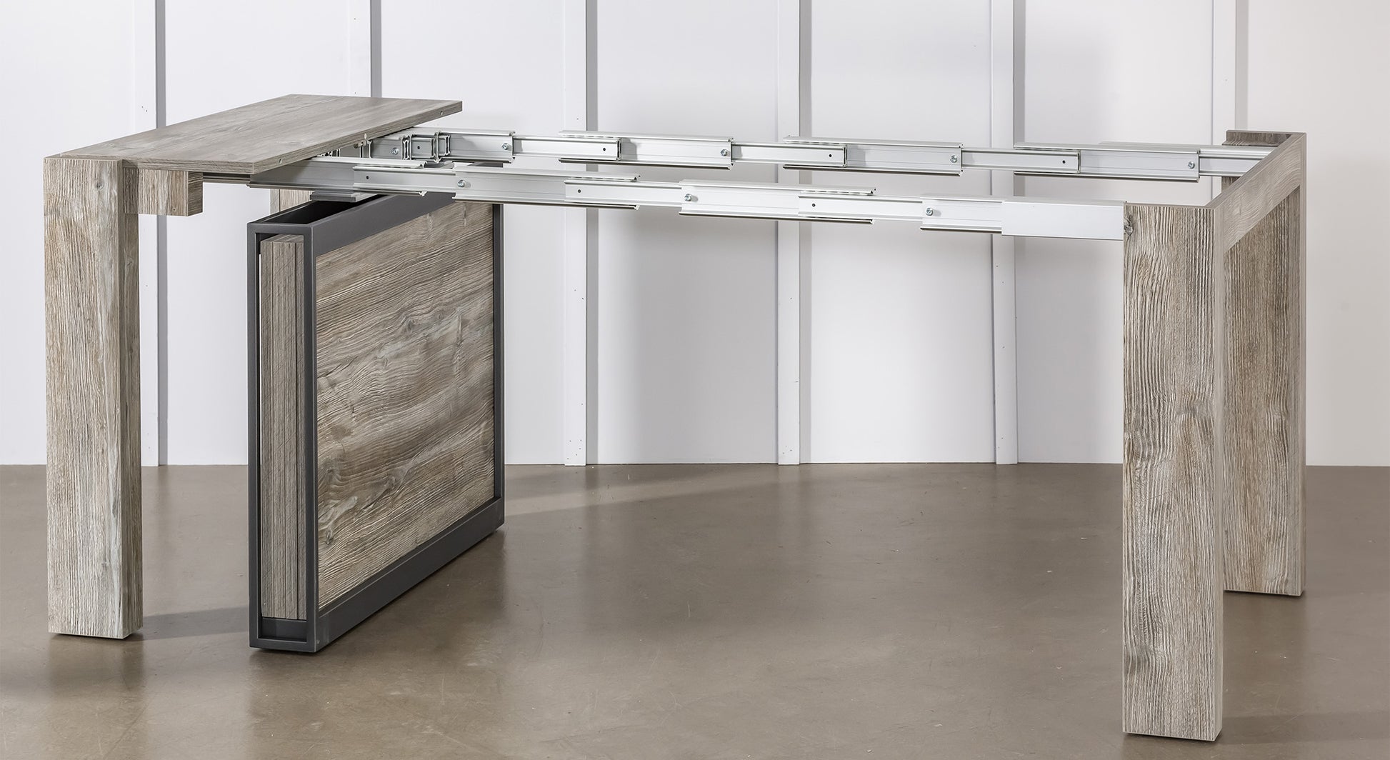 Fall for COMPACT, an extendable console set to become an authentic all-purpose piece for contemporary living thanks to its eclectic aesthetic and its ability to be very small or a large table for 12. This is a table that will take a big place in your heart .
