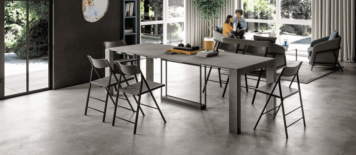 Fall for COMPACT, an extendable console set to become an authentic all-purpose piece for contemporary living thanks to its eclectic aesthetic and its ability to be very small or a large table for 12. This is a table that will take a big place in your heart .