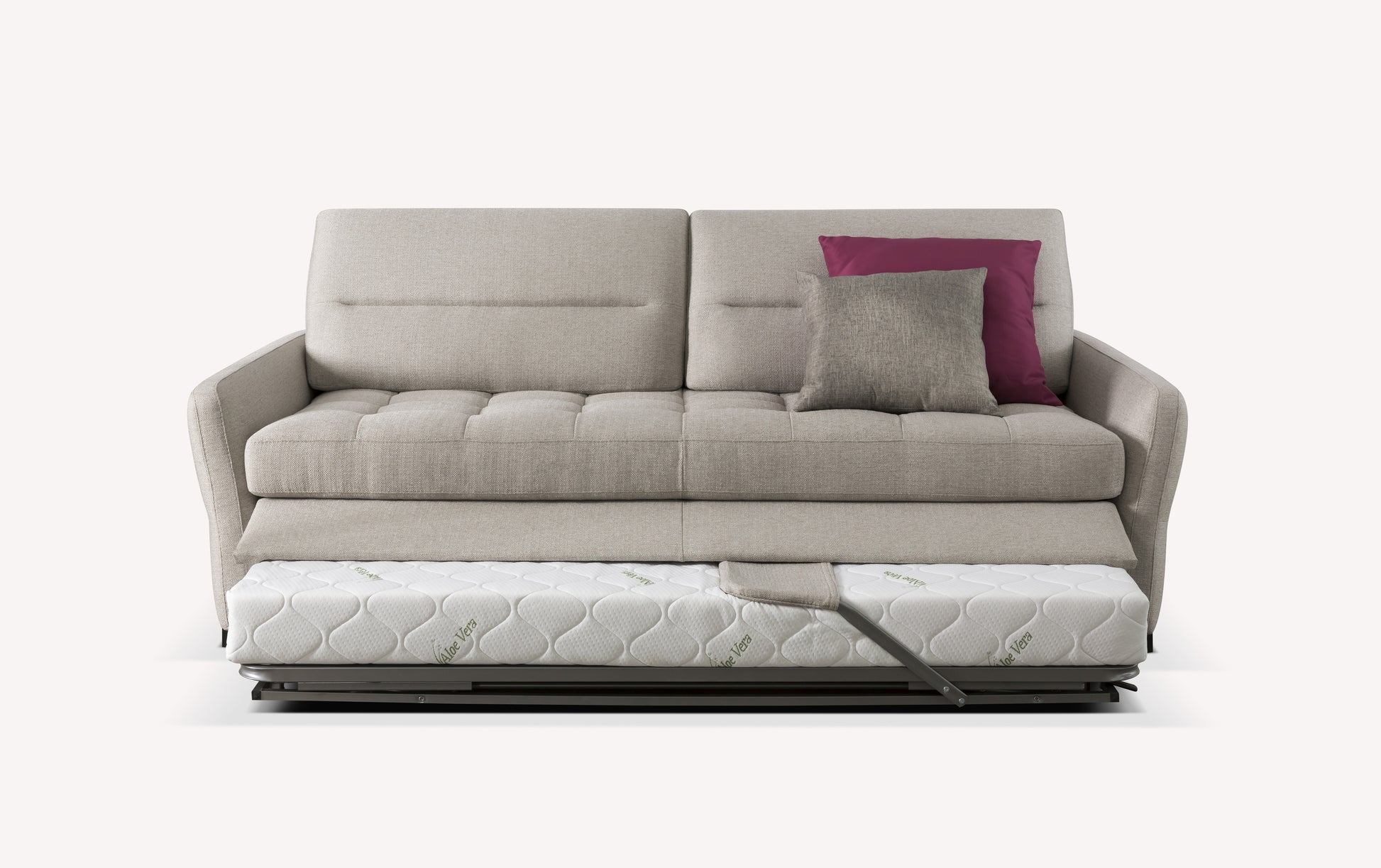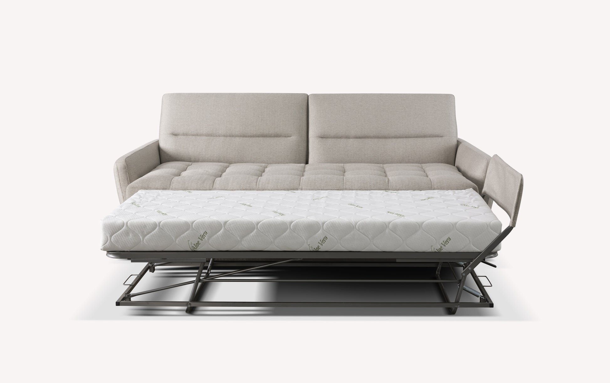 Enjoy an original piece of furniture at home to optimize space while enjoying great comfort with the GEMINI padded pull-out sofa bed. Its sober and timeless design will charm you!