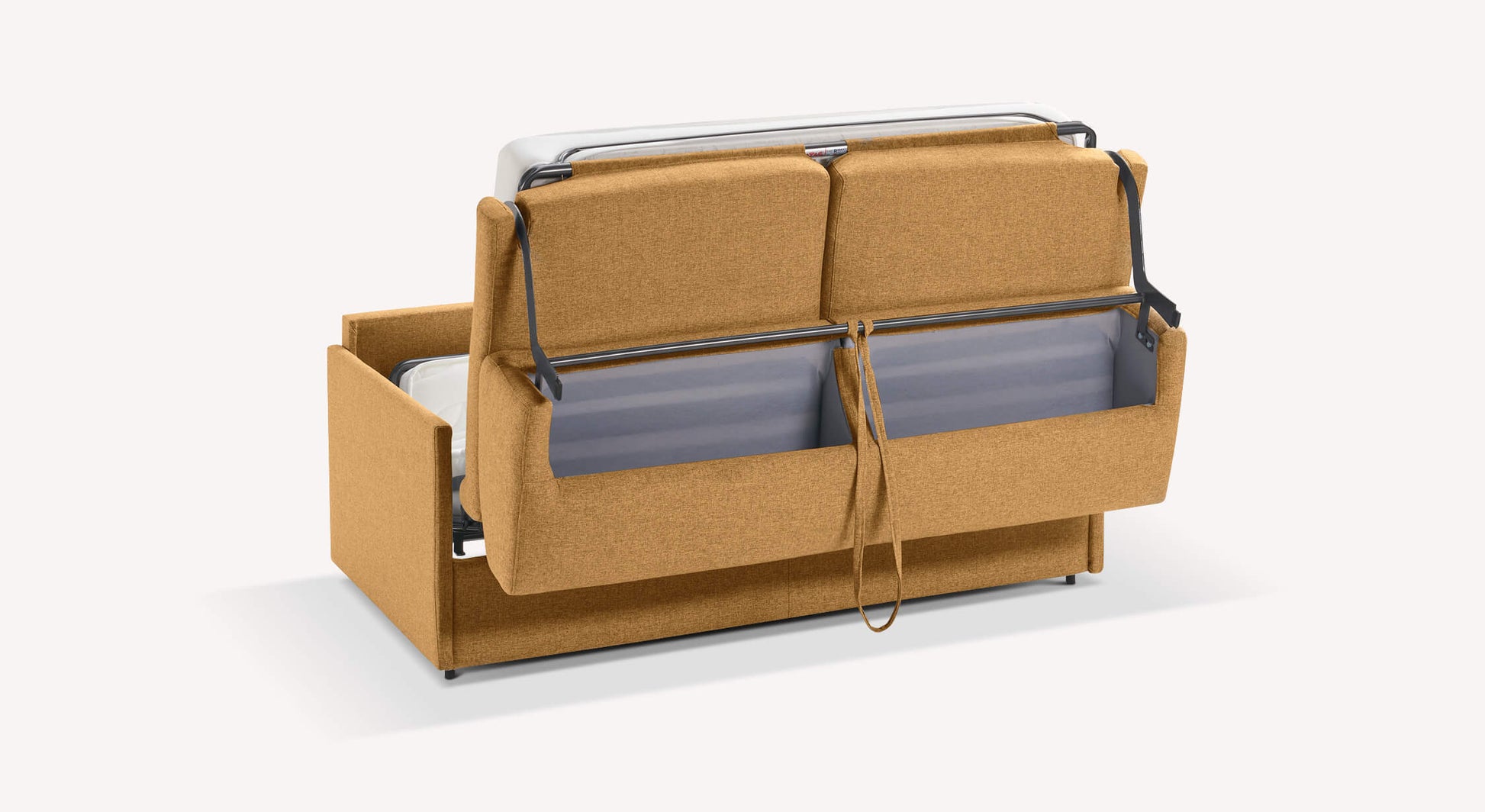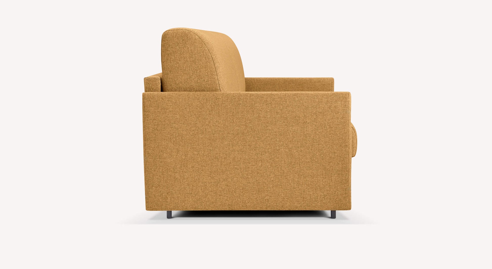 Lorsque le canapé Jerry Compact est entièrement déplié, en format 140, il mesure 170 cm de longueur, 205 cm de profondeur et 88 cm de hauteur. Grâce à ses accoudoirs fins, il maximise l’espace assise et couchage tout en conservant un format ultra compact, parfait pour les petits salons ou les studios.