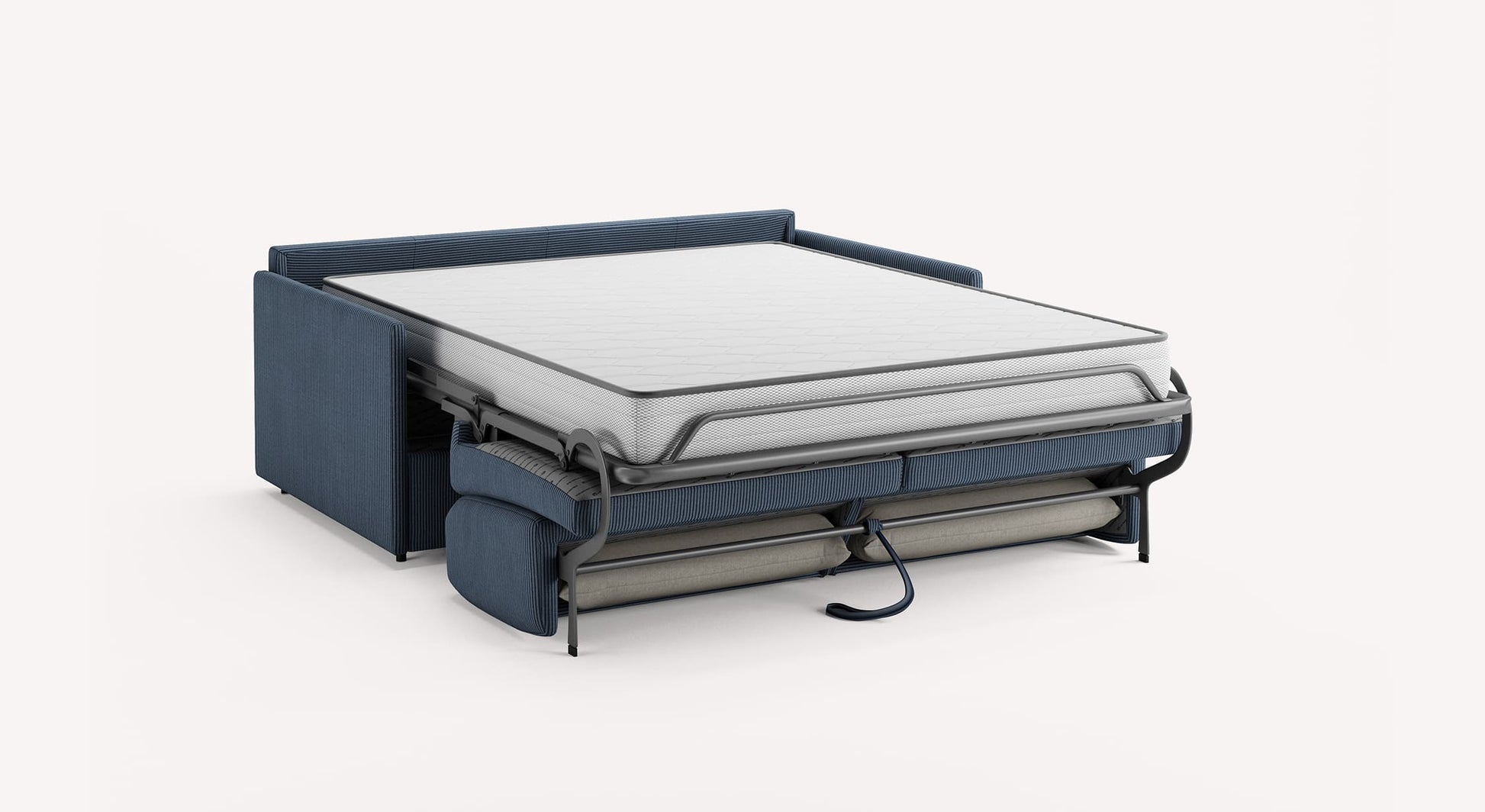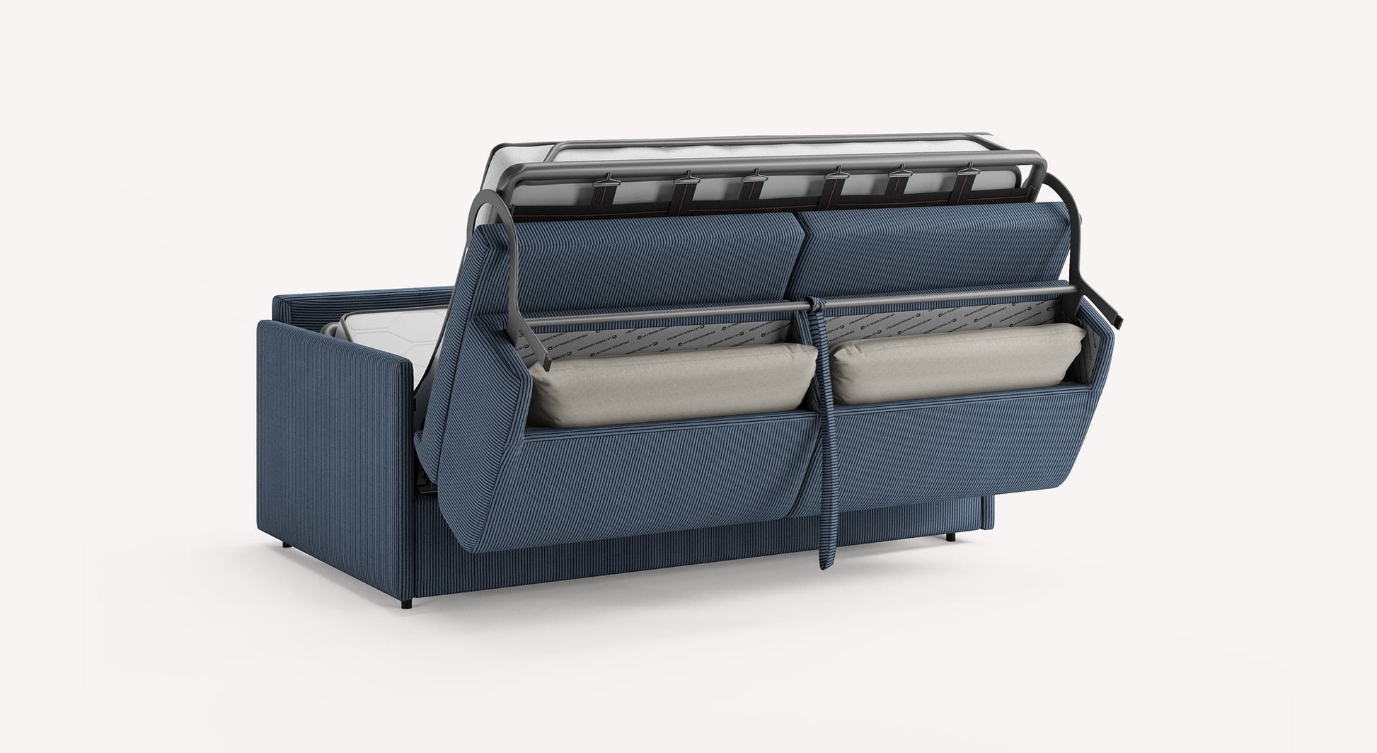 Thanks to its quick-unfolding system, the Jerry Compact sofa converts into a bed in a few simple steps, without having to remove the cushions. This mechanism is fluid, intuitive and robust, ideal for frequent use.