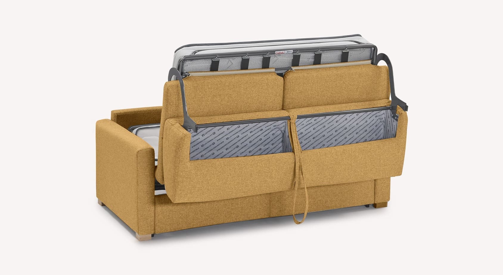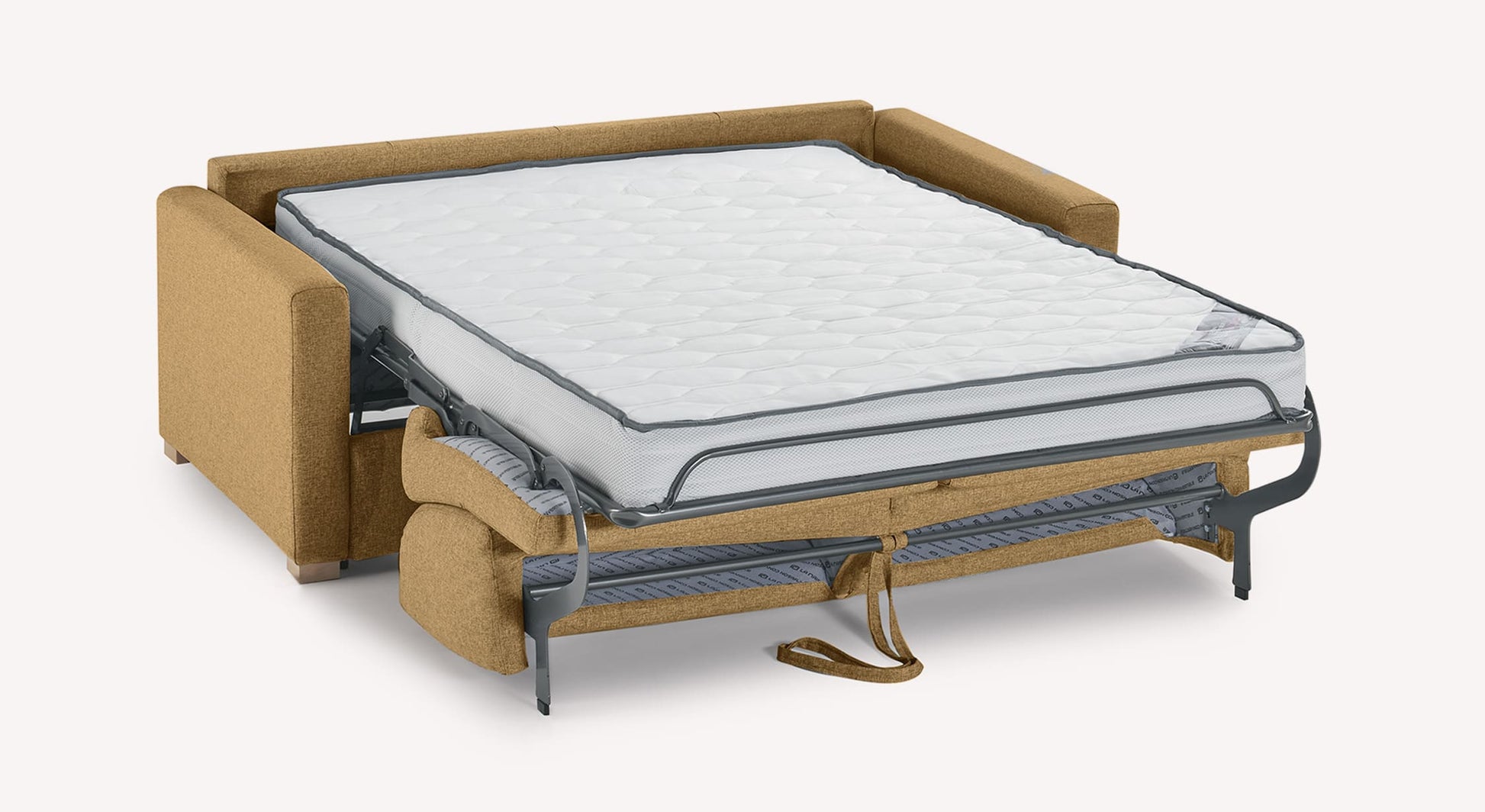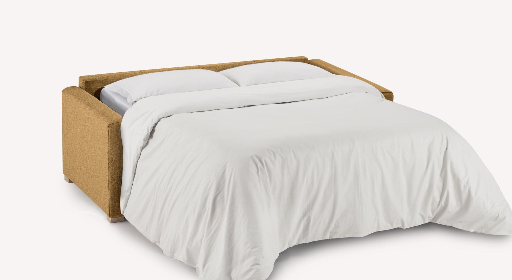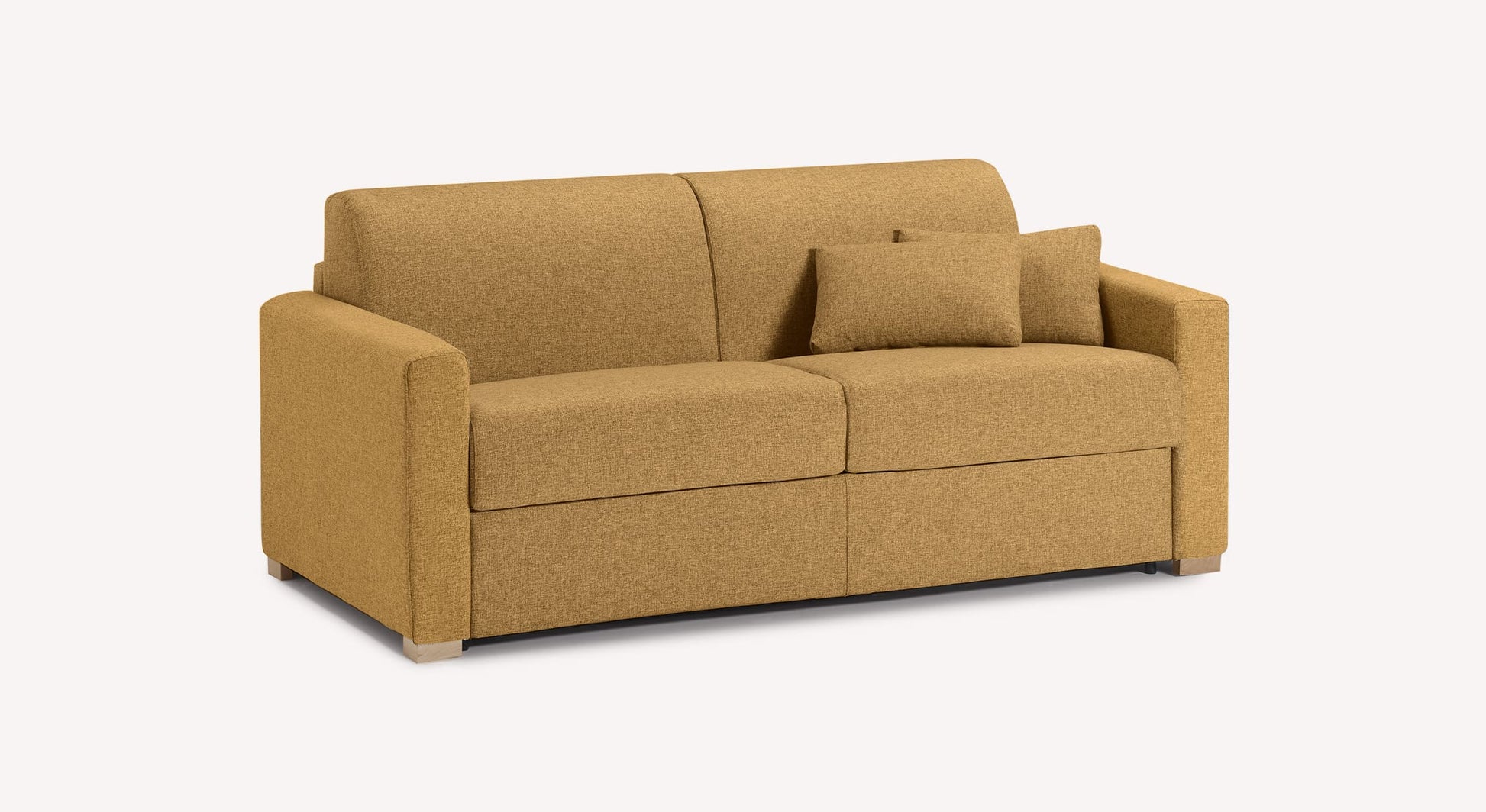 Découvrez le canapé convertible Jerry avec ses accoudoirs classiques et son design épuré pouvant s'adapter à tous types de déco. Il est également disponible avec une méridienne en option.