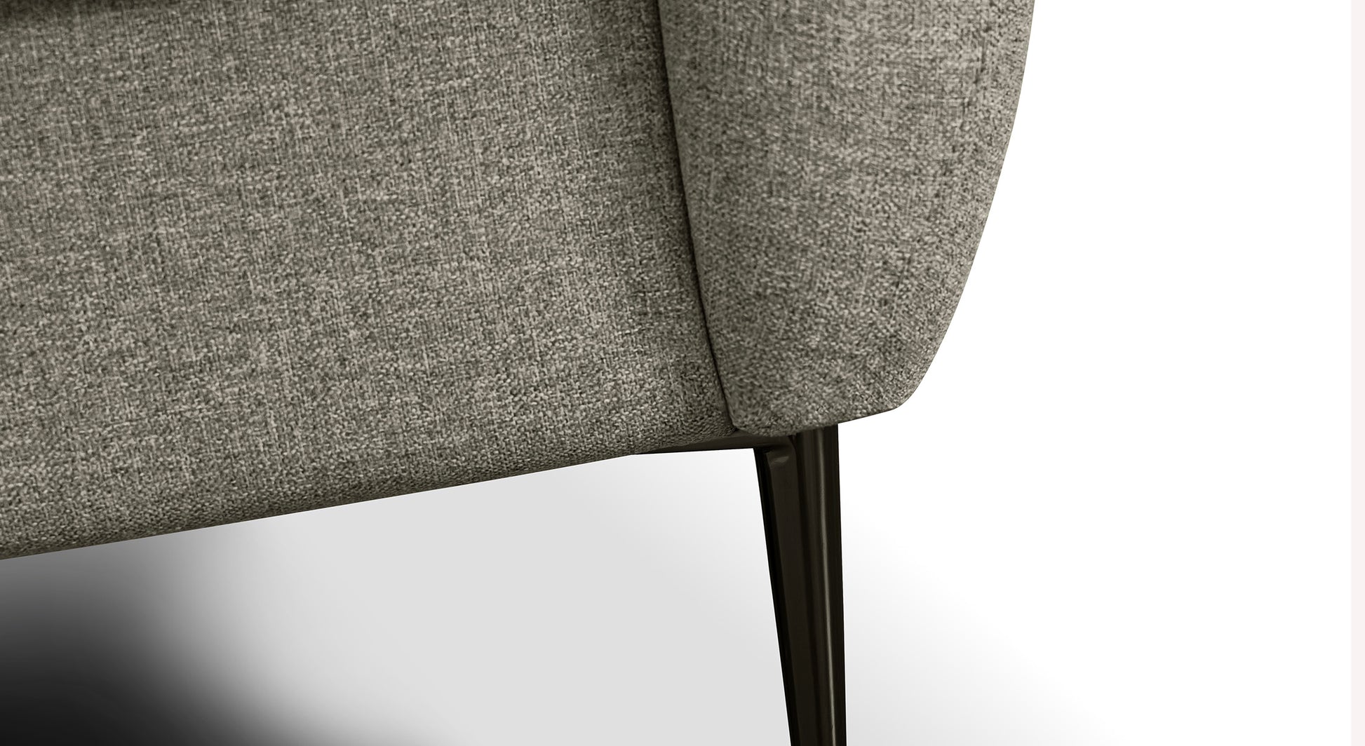 Here is the LAYNE fabric sofa! This superb sofa with delicate finishes will enhance any interior: its cocooning and distinguished appearance with its flared armrests and its padded back will bring a trendy touch to a living room. Mounted on its metal needle feet, it is a real must-have to revive your living room!