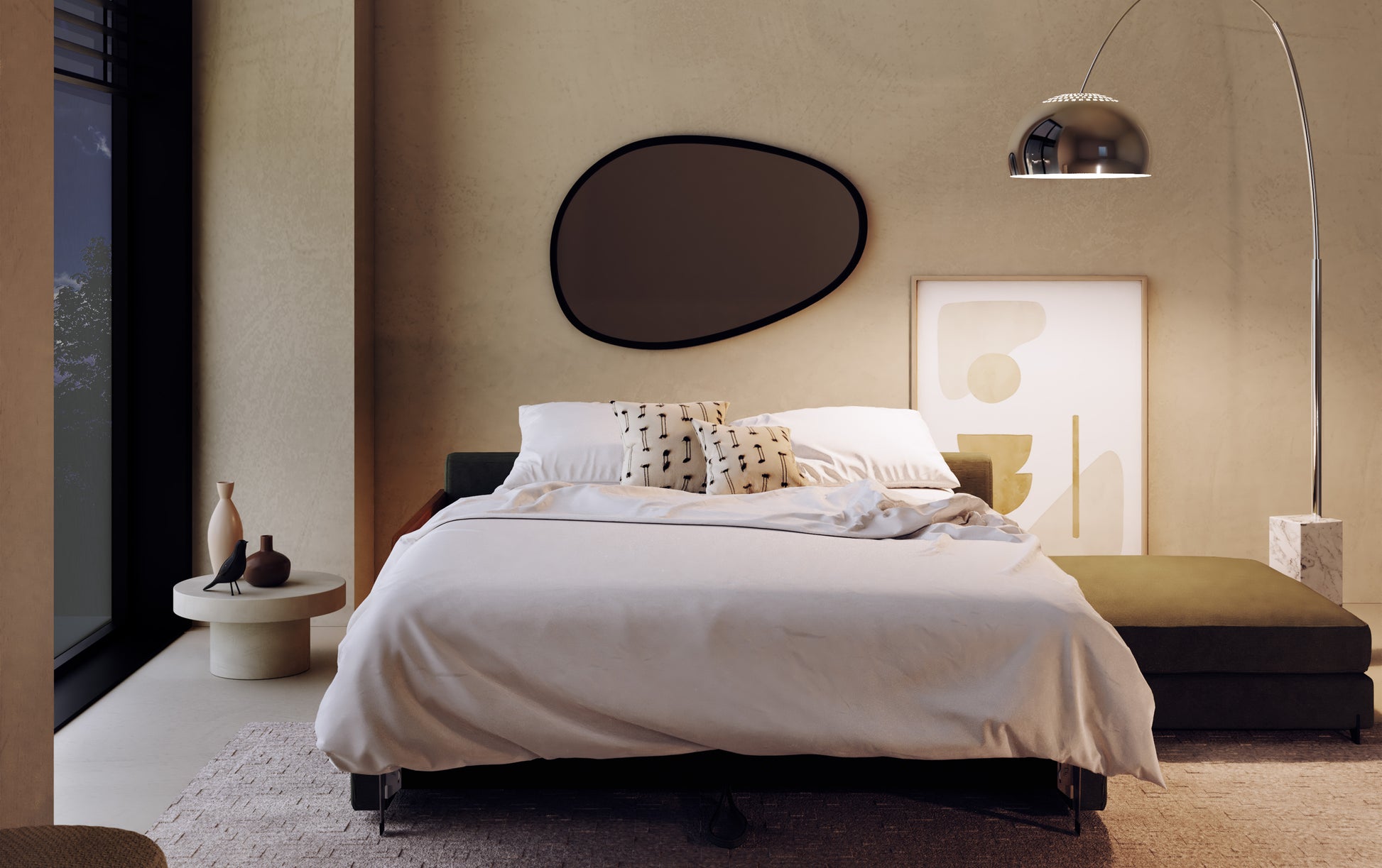 The NELLY model is the first sofa that combines convertible and modular functions. Functional and elegant, the minimalist silhouette of this model meets the requirements of space and comfort. Its unique design allows multiple combinations of shapes to be composed around the convertible seats.