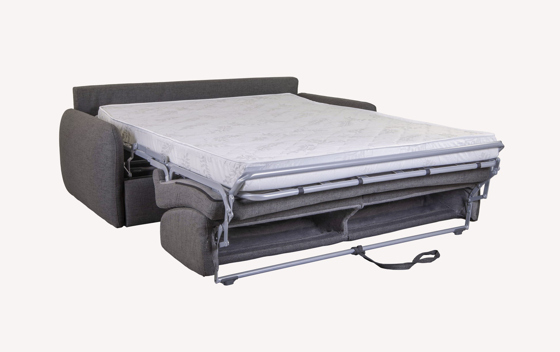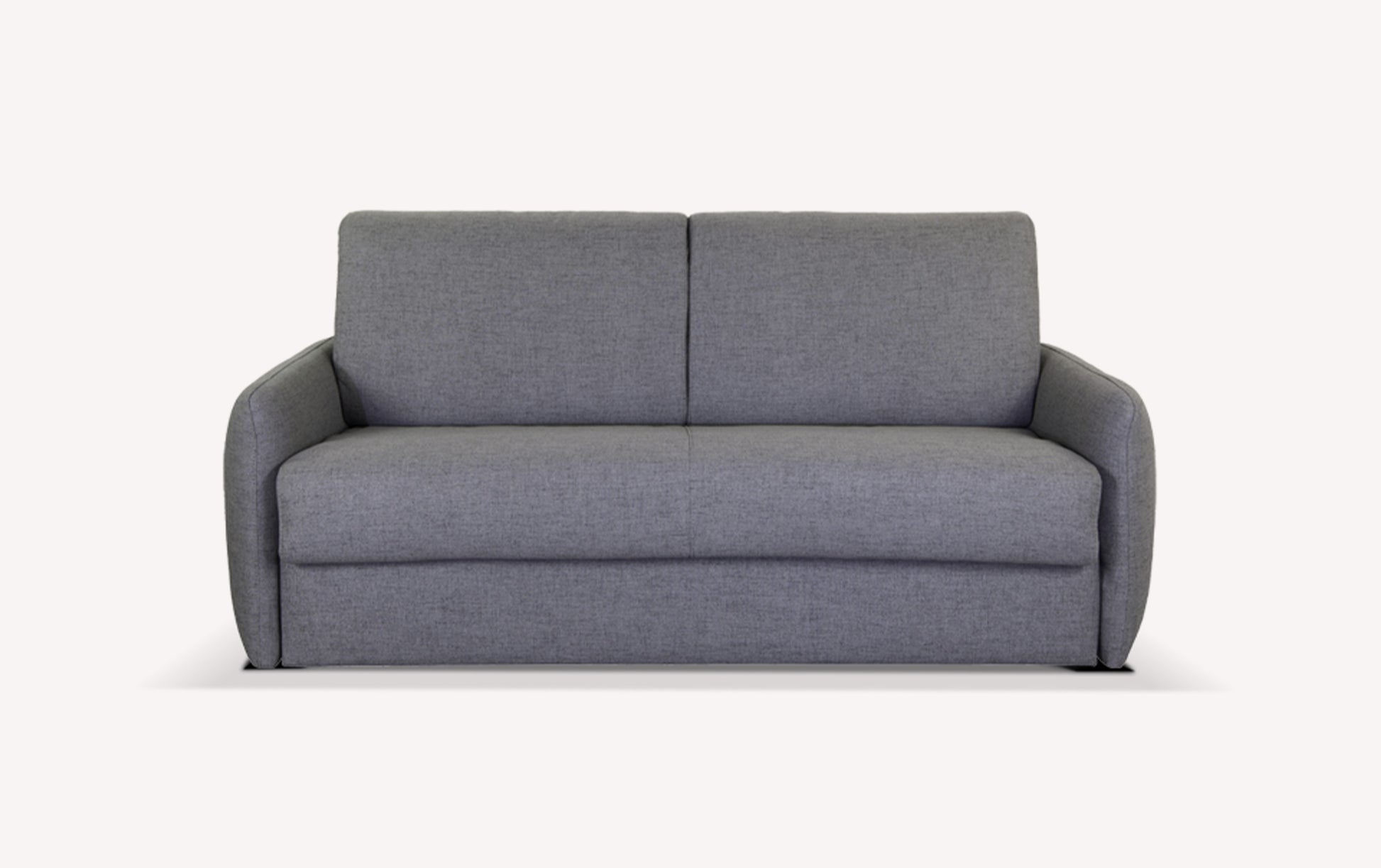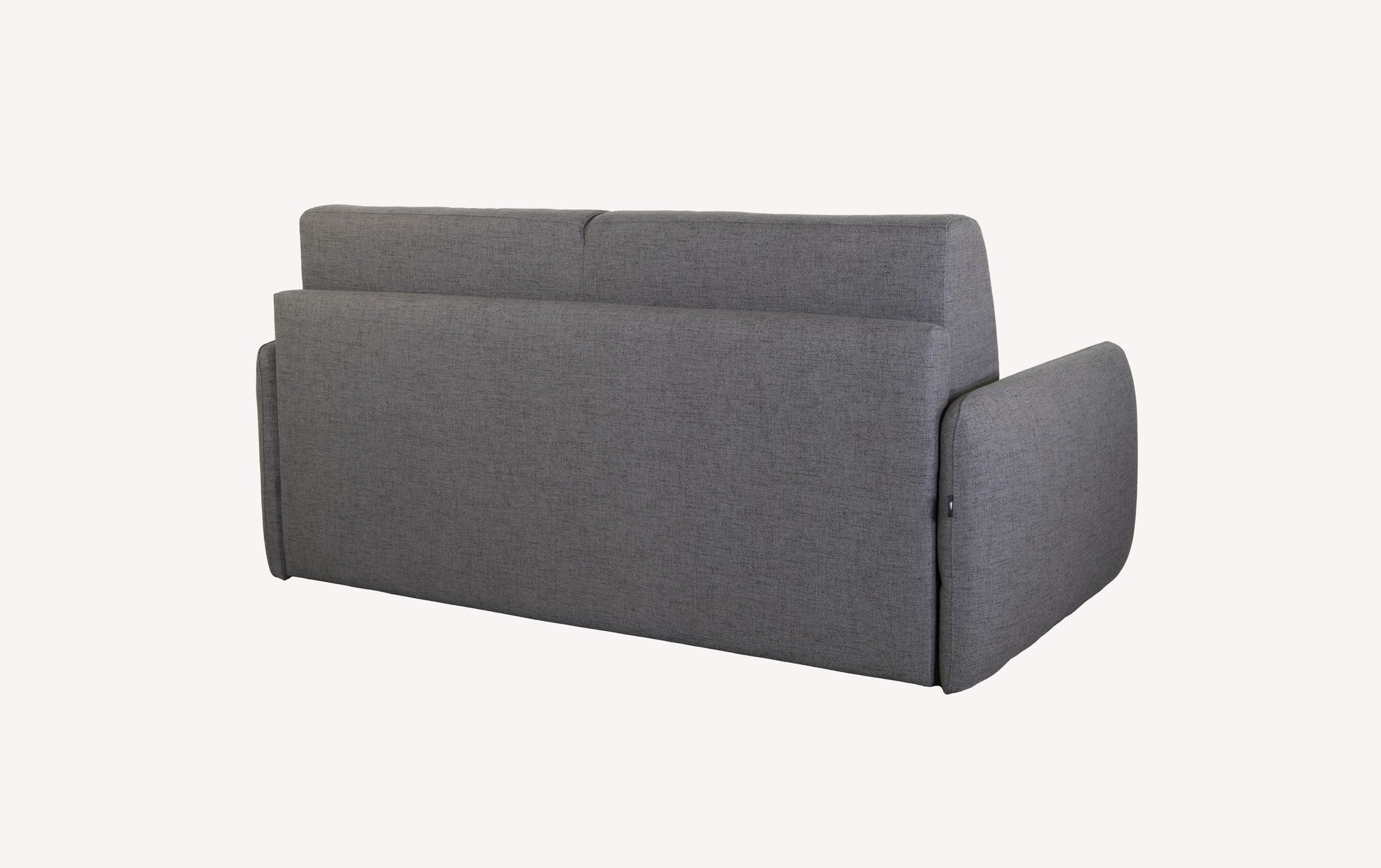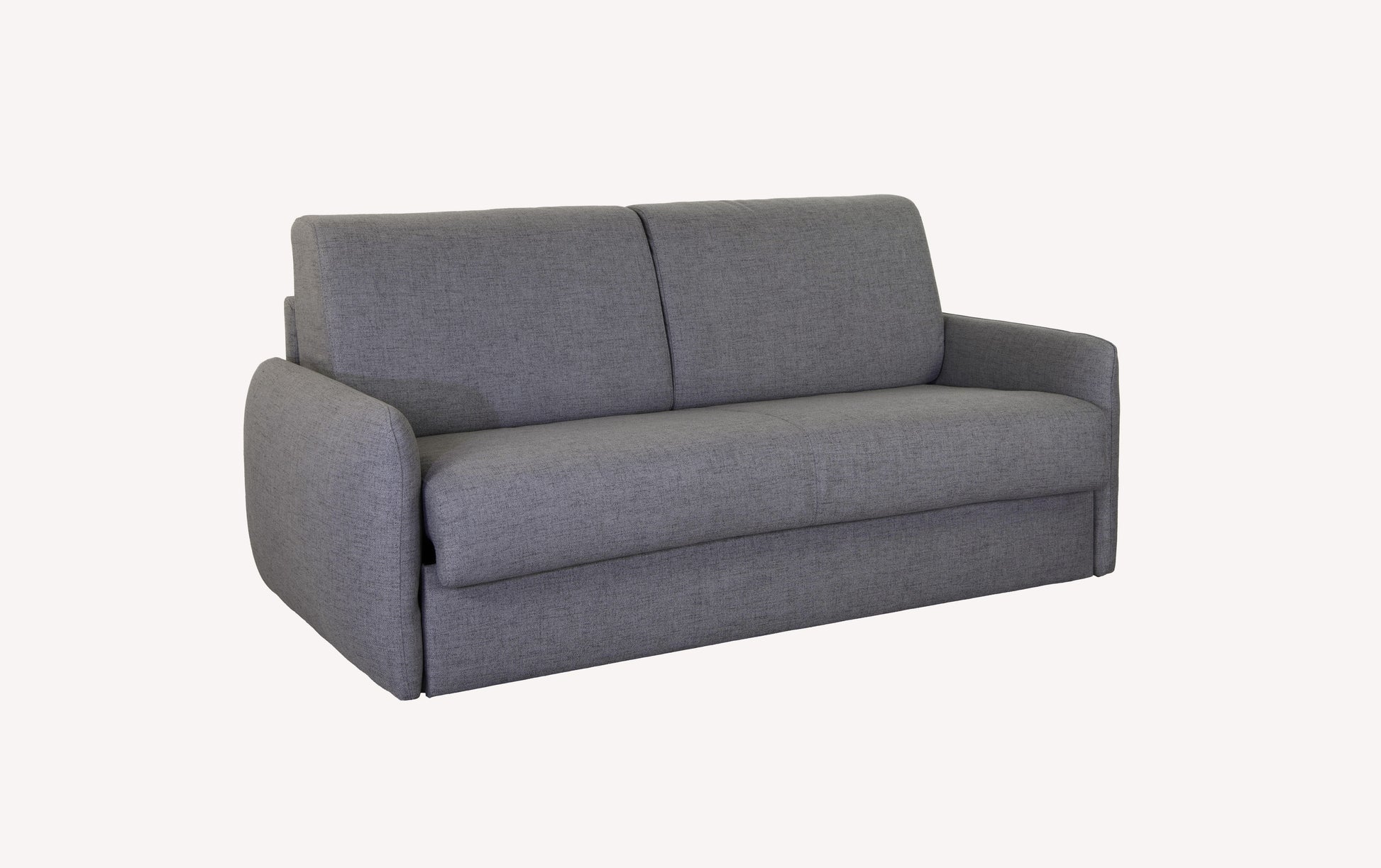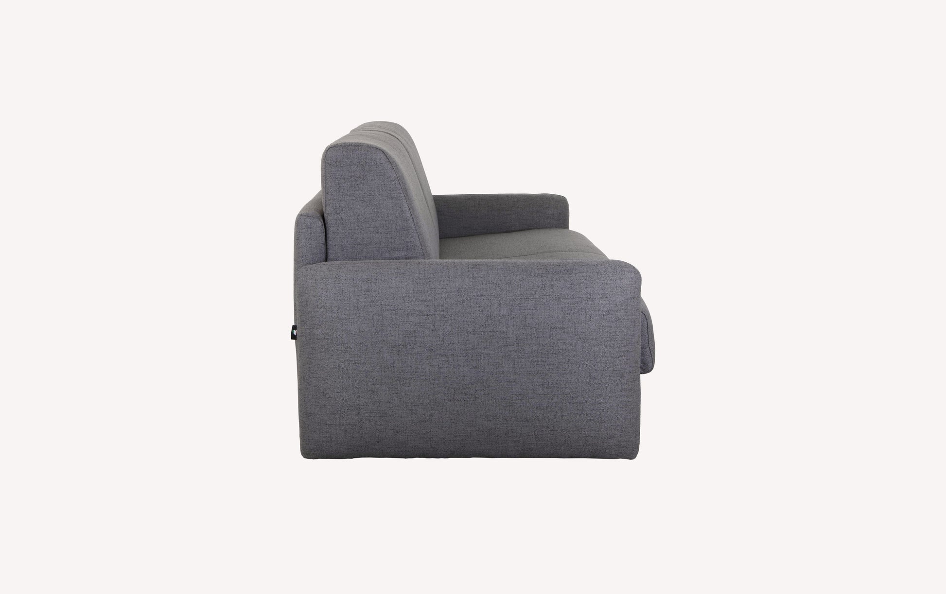 Discover the NEVADA model, the sofa convertible into a small bed. Sober and modern, this small rapido sofa, available in gray or blue fabric, has curved and very clean lines, in line with the trend. The finesse of the armrests of this compact convertible sofa brings true elegance to the piece of furniture. Compact, this designer mini convertible sofa offers three seats.
