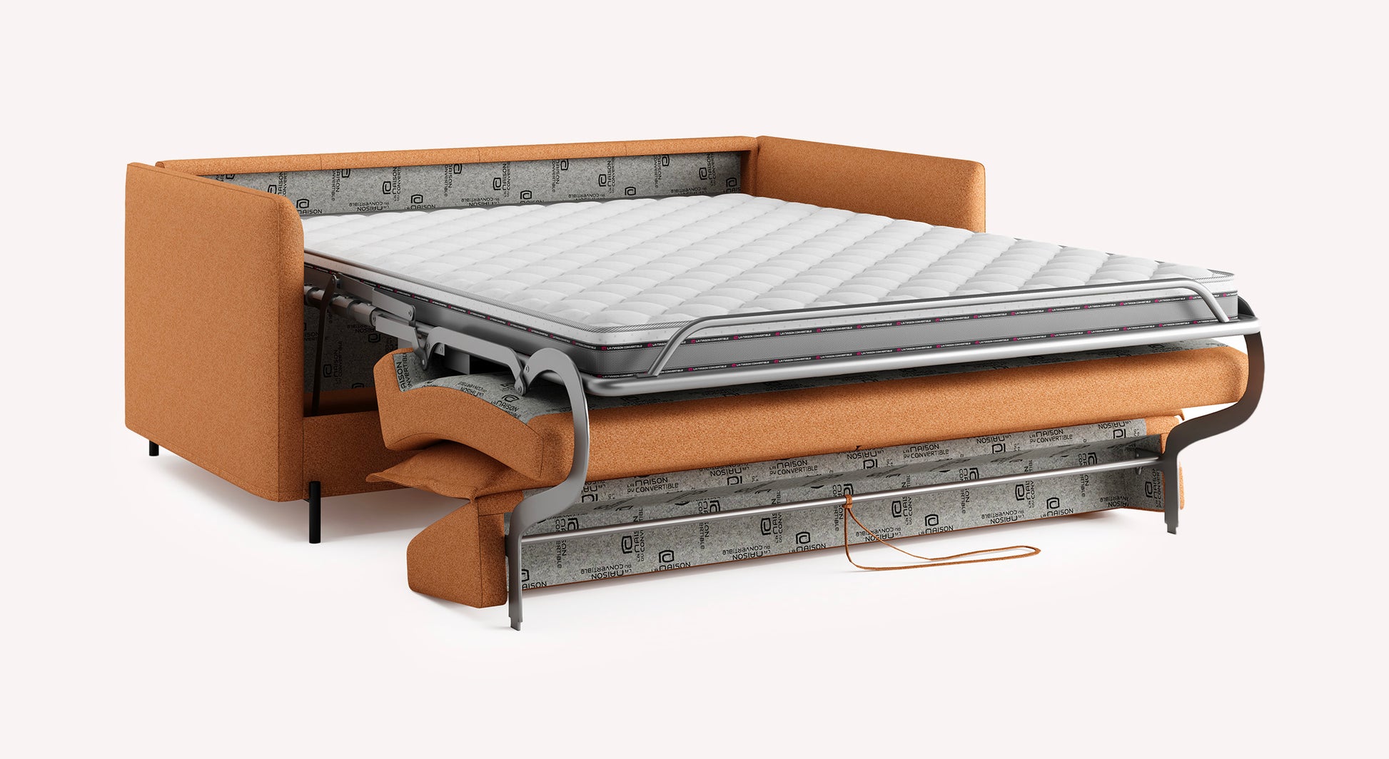 Sophisticated, elegant, and with a rock touch, the slender SERGE convertible sofa bed on legs is a small model that will optimize your space. Practical, you will go from sofa position to bed position in a few seconds.