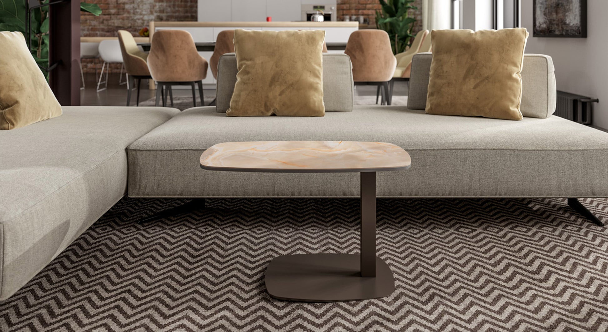 Fall for the pretty soft and refined marble finish top of the SERVUS sofa dinette table. With its modern Italian design, the SERVUS side table is positioned in your living room as furniture but also as a very remarkable decorative object. Tray available in different coverings, personalize it according to your tastes!