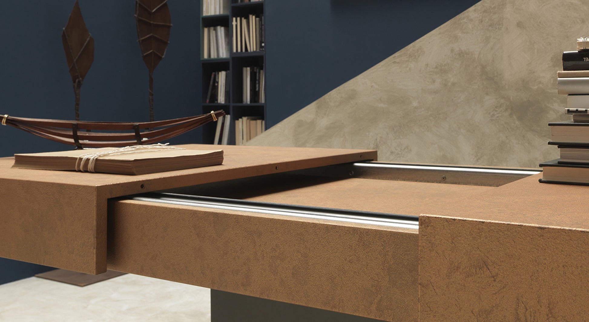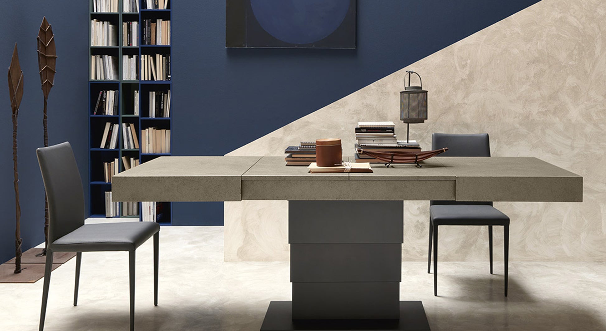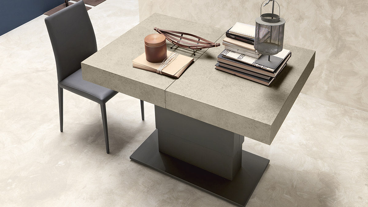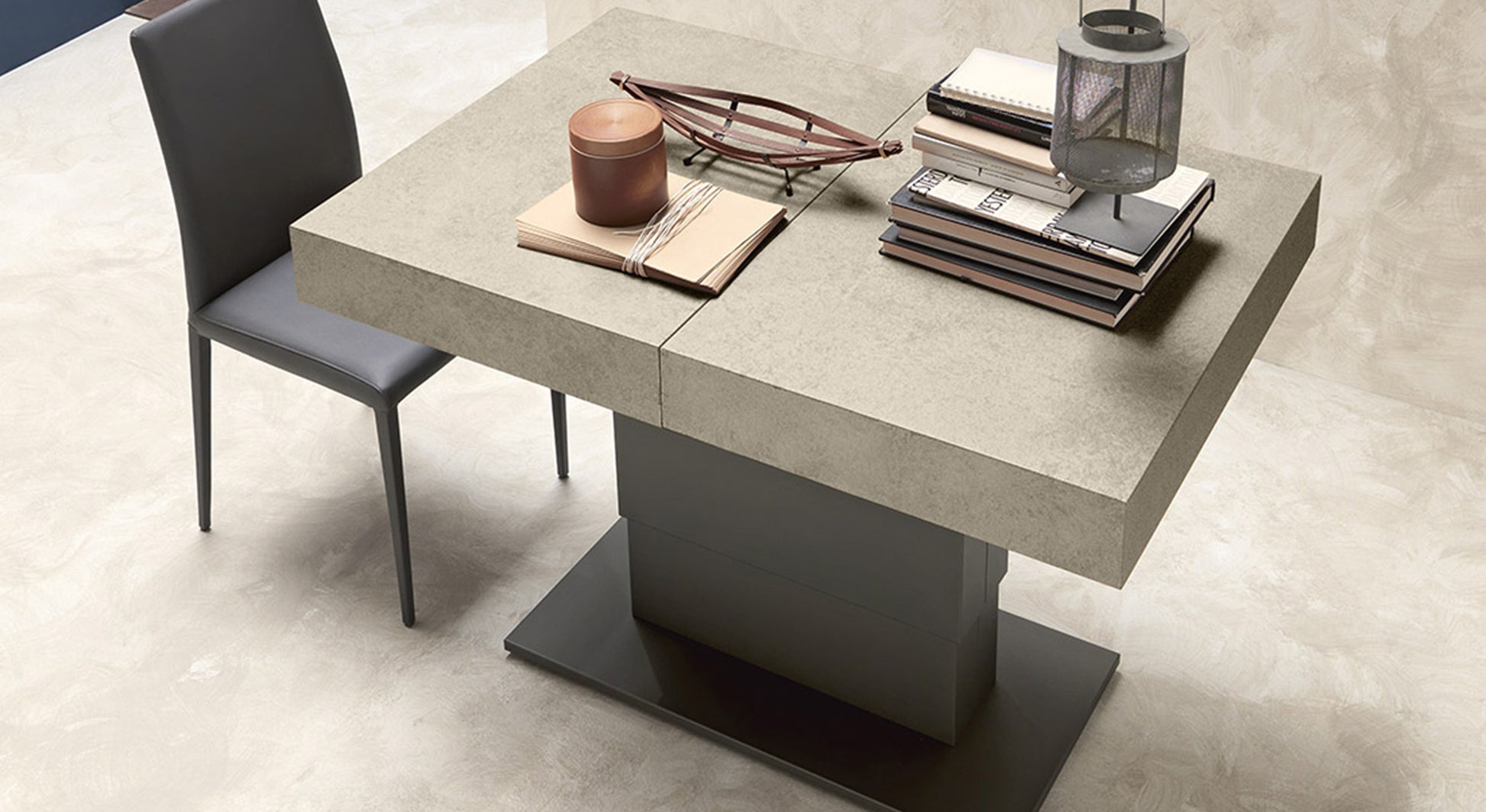 ARES FOLD is an extendable and liftable table expressly designed to amaze. Its designer foot fits perfectly into a minimal and essential decor, but attracts attention in a more informal and warm context.