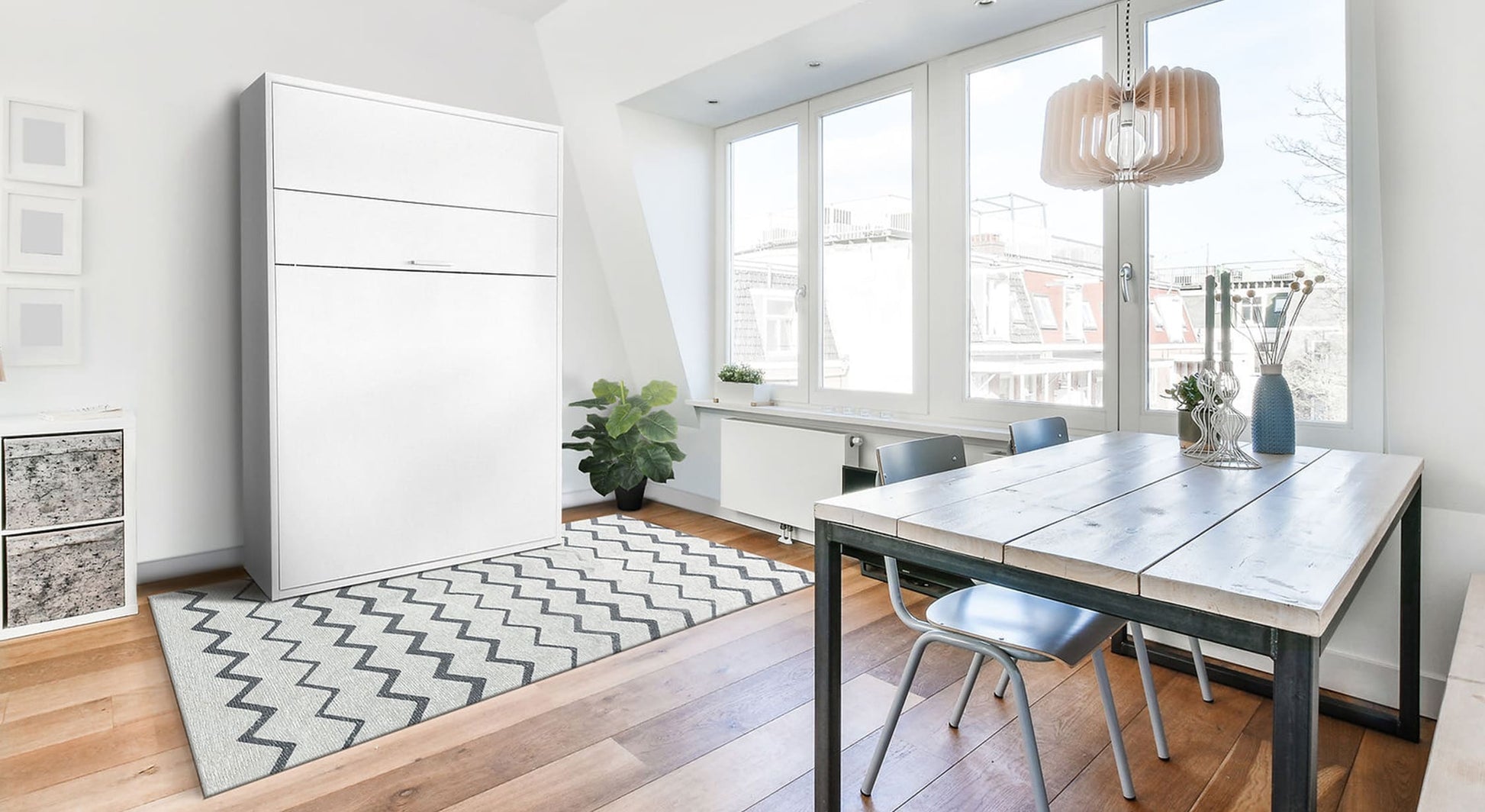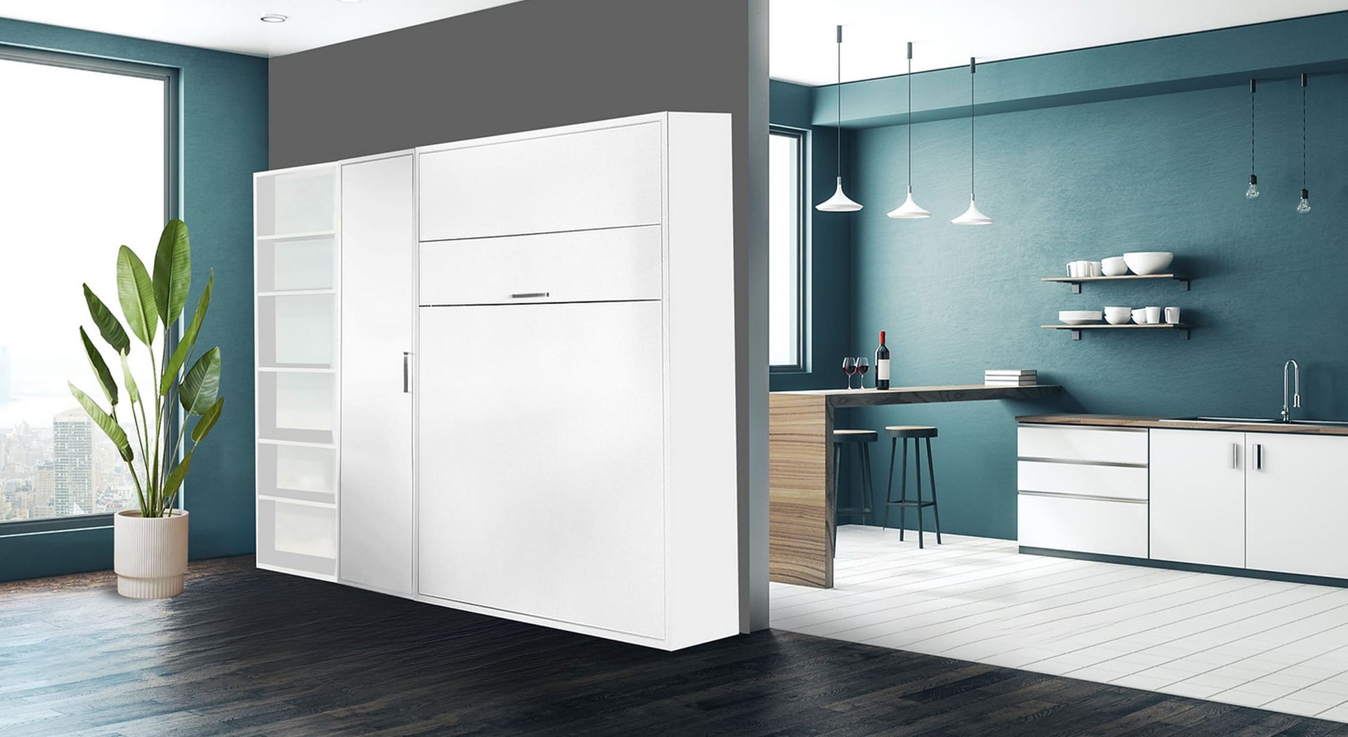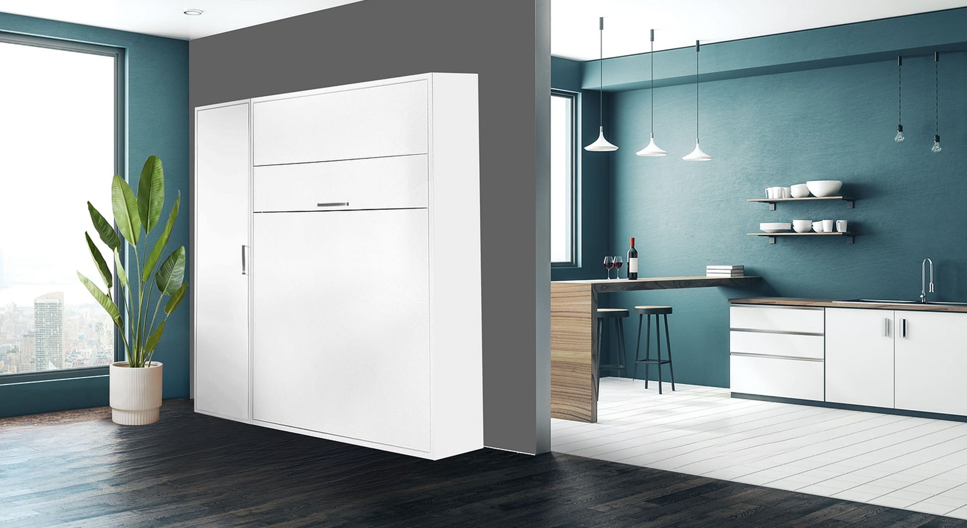 The Betty wall bed can be unfolded to become a real double bed with a slatted base that can accommodate a mattress up to 20cm thick. Made in France, the Betty wall bed is available in 140x200 cm sleeping space, allowing 2 people to spend pleasant nights. The Teddy wall bed is the ideal option for equipping your studio with a wall bed .