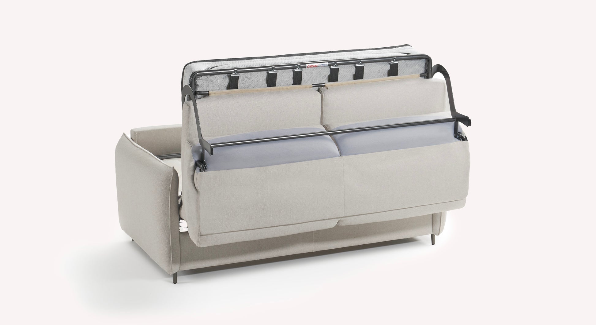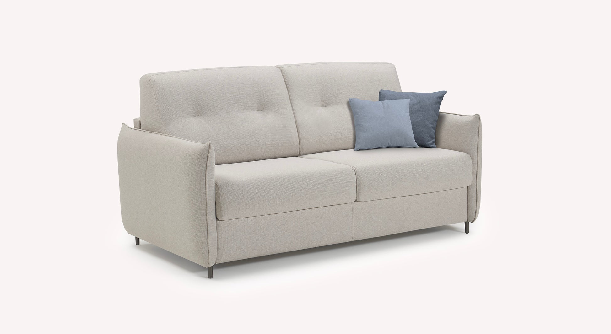 Fall for our small, compact and comfortable TONY model. It is appreciated during the day for its welcoming seat and at night with its 17cm mattress.