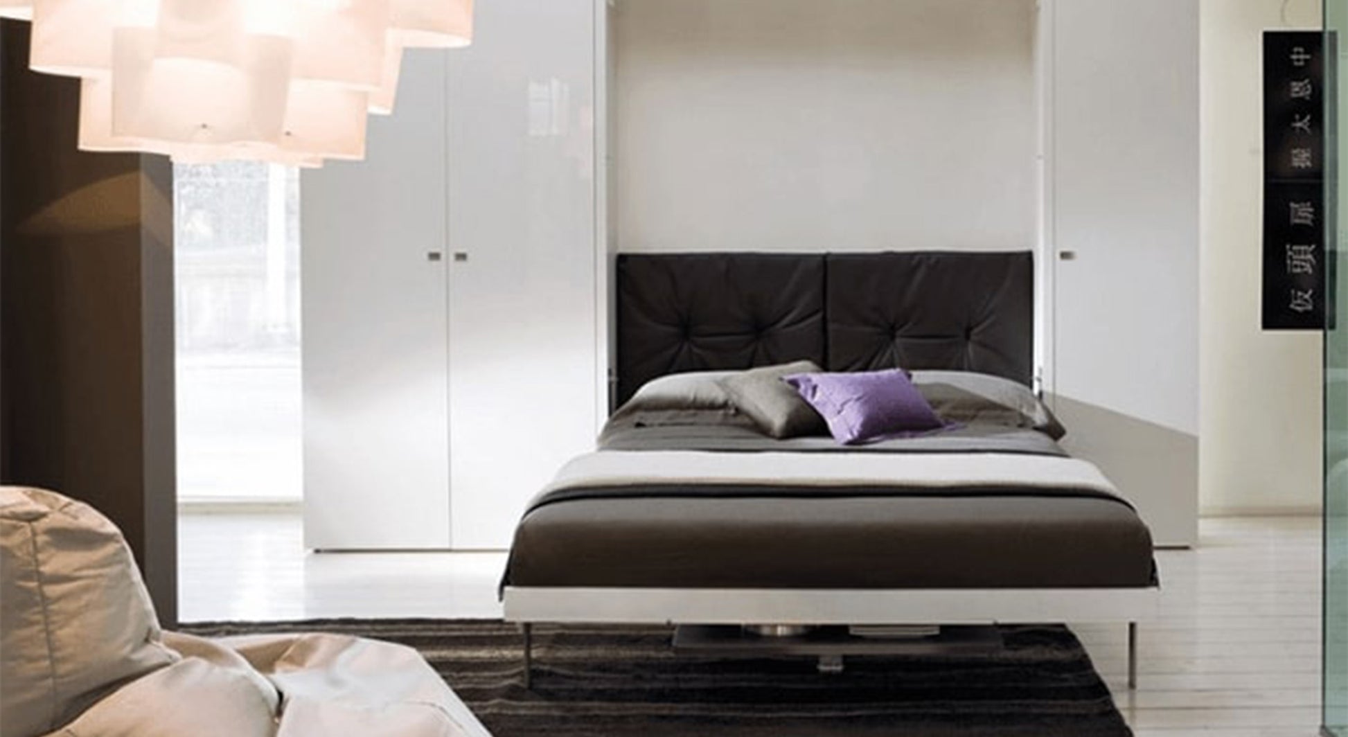 Resolutely elegant, this Italian retractable bed has a transformable system with a vertically folding 2-seater bed which is hidden when closed behind a large table (for 4 people) perpendicular to the front. In addition, thanks to its numerous finishes, colors and coverings available, it will fit perfectly into your decorative space.