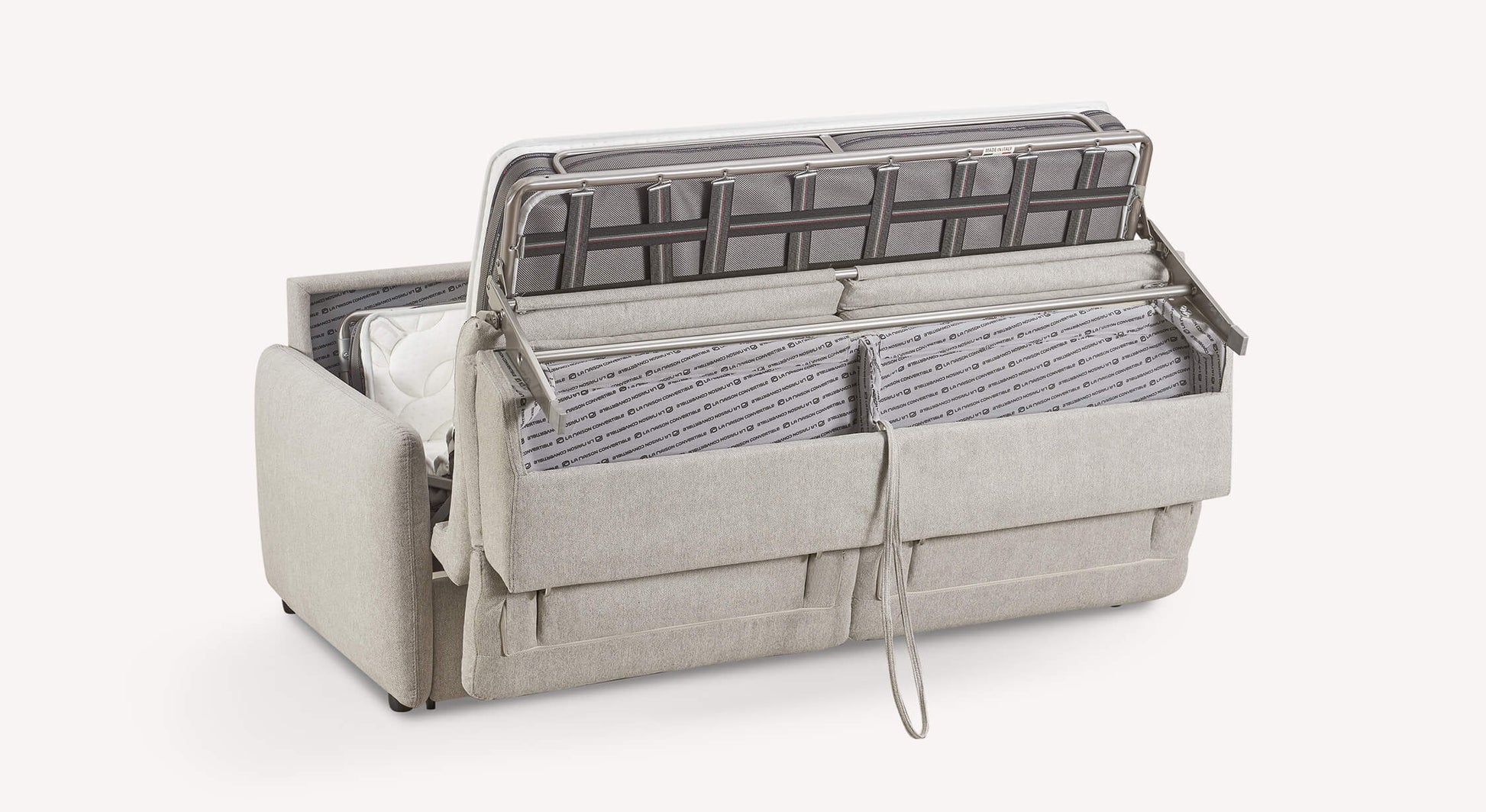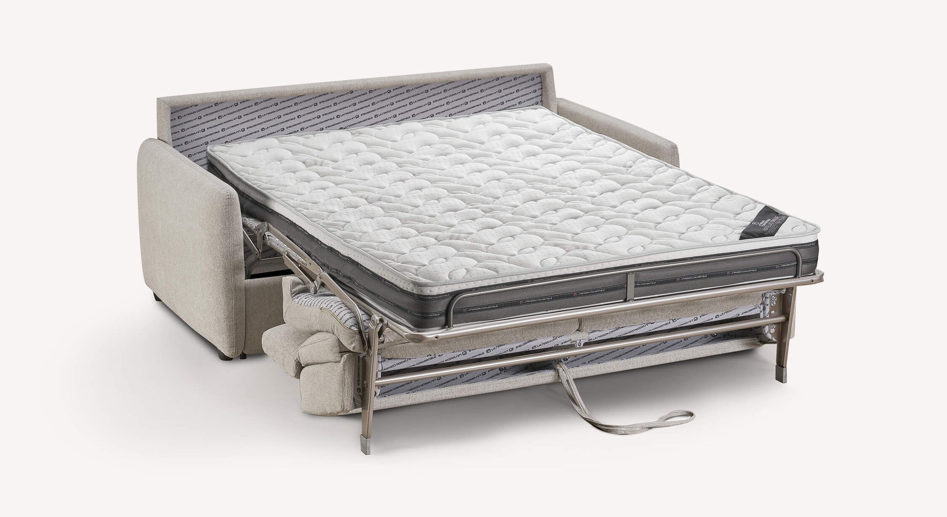 Le BRUCE se déplie d'un geste simple pour laisser place à un généreux couchage de qualité avec un matelas ultra confort de 17 cm d'épaisseur ! Doté de têtières à crémaillère inclinables dans toutes les positions, même vers l'avant, il procure une position assise très confortable. Vous pourrez également lui associer un fauteuil ou une méridienne.
