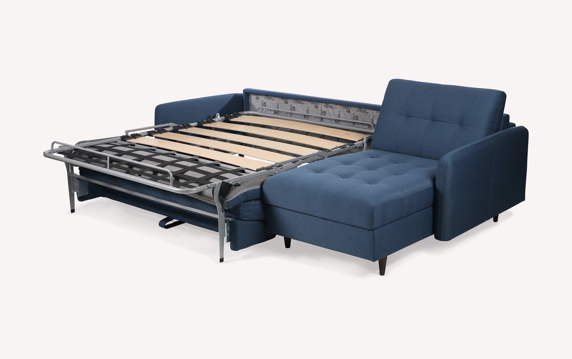Le canapé d'angle convertible SOHO, le canapé lit vintage ! 100% design et 100% confort, il s'associera aux intérieurs les plus tendances. Profitez de son coffre de rangement !