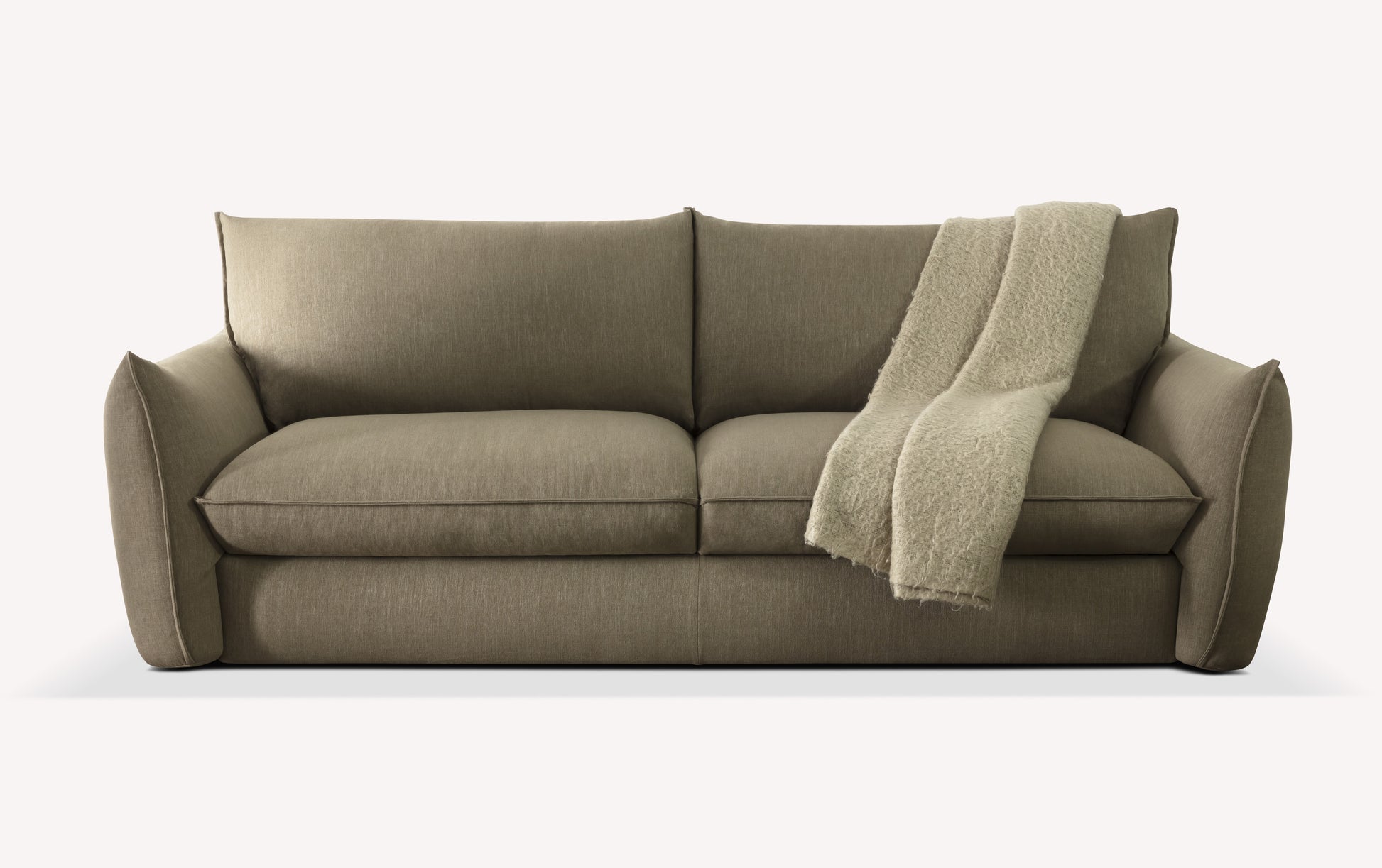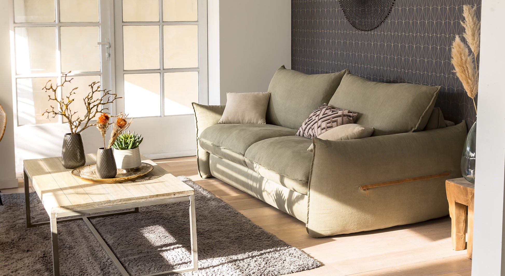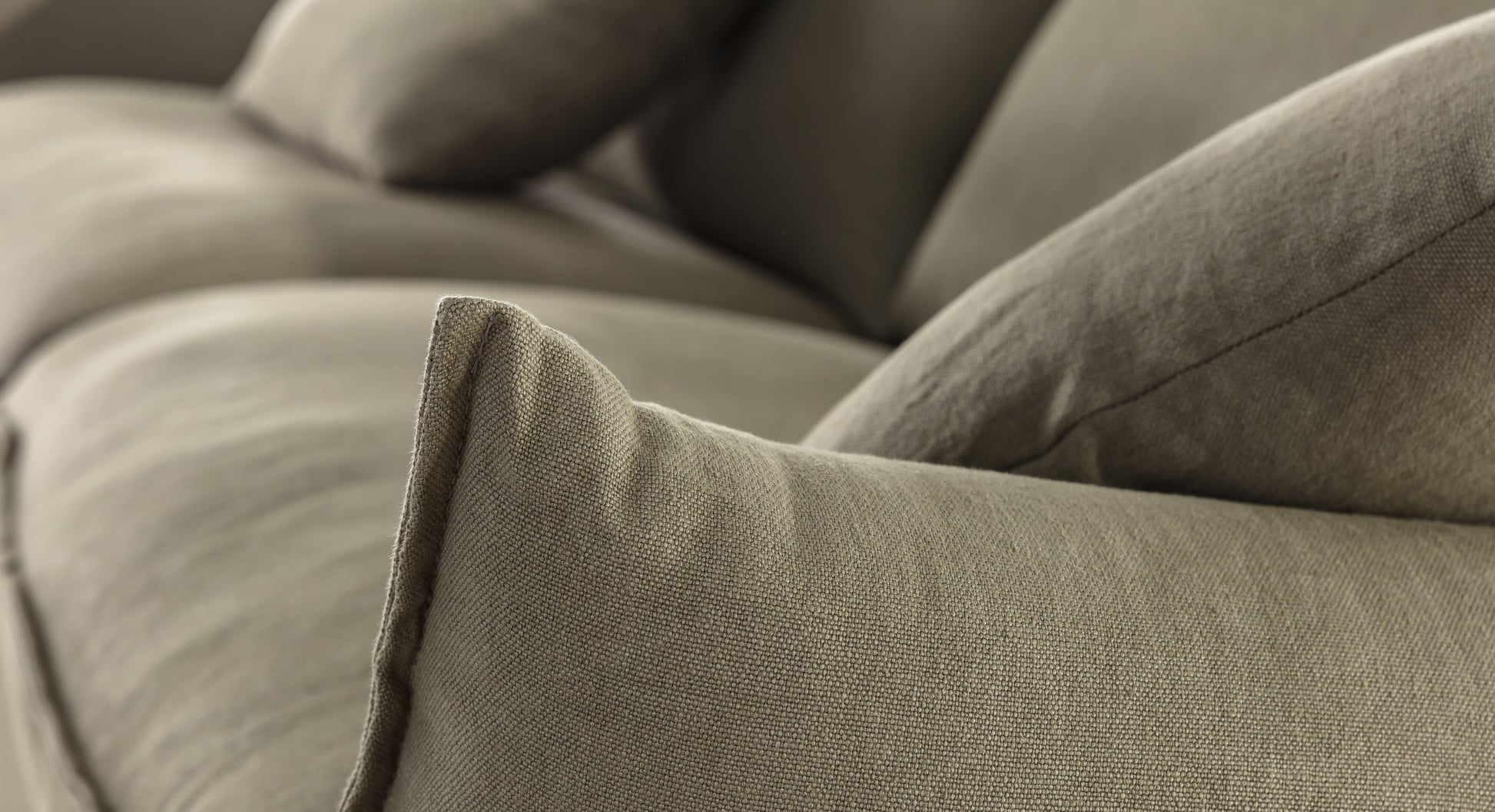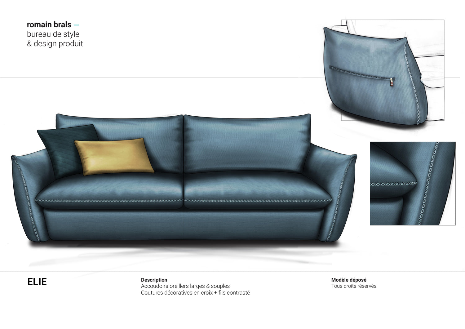 Le ELIE est le modèle cocooning par excellence. Son allure apporte un esprit campagne et bohème à un intérieur, c'est pourquoi les tissus naturels tel que le lin lui vont à ravir. Ses assises et dossiers garnis de plumes apportent un grand confort et ses accoudoirs oreillers souples donnent envie de s'y lover.