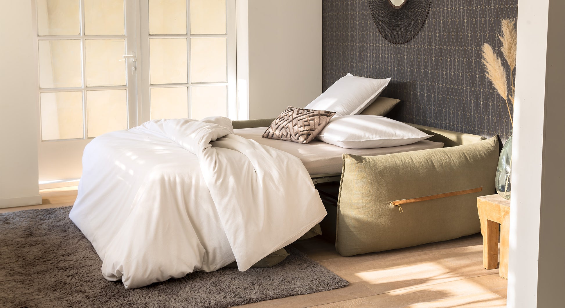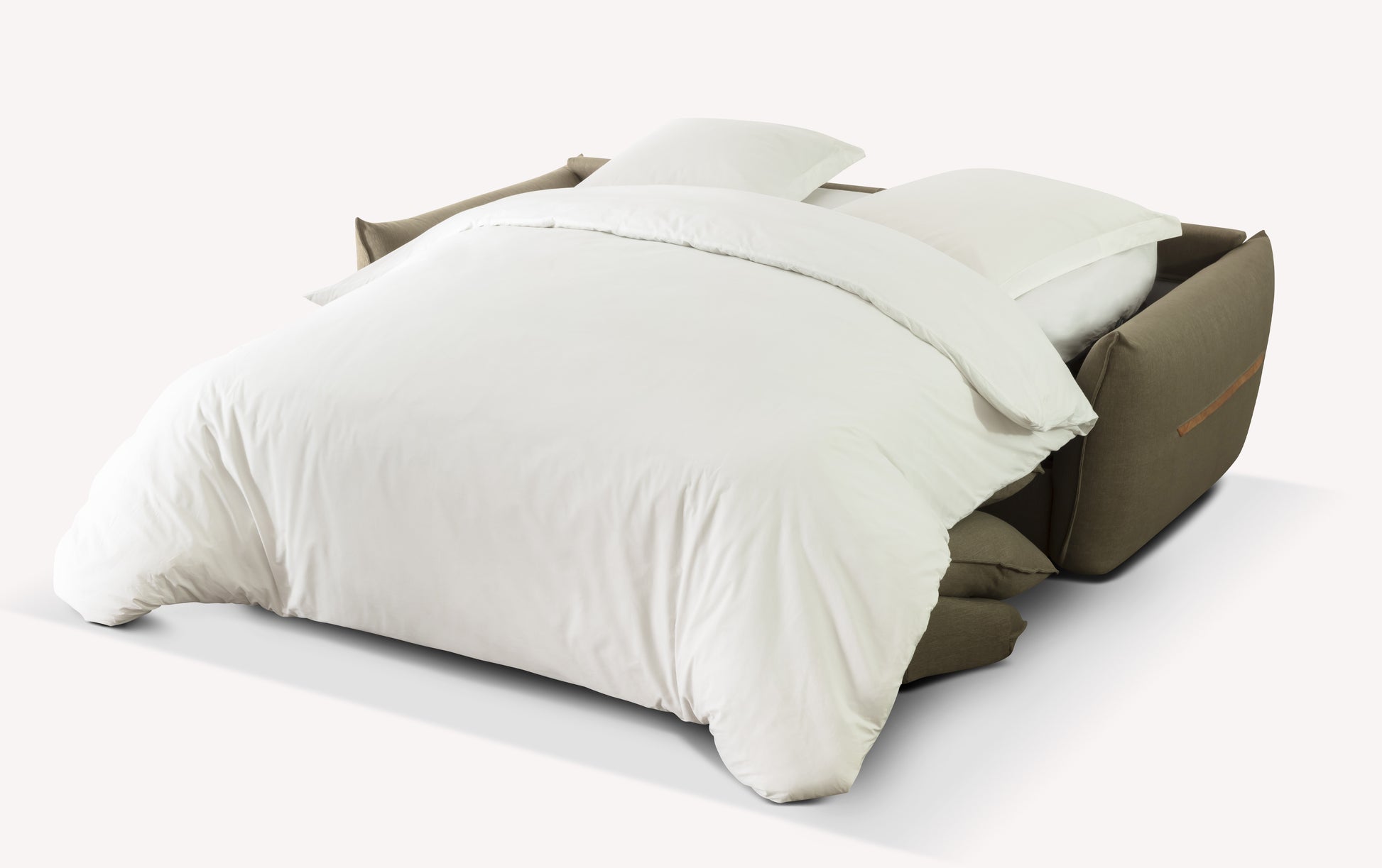 ELIE est un canapé convertible qui possède l'apparence d'un oreiller confortable mais se transforme d'un geste simple en confortable lit deux places. D’apparence rustique, son design est idéal pour un canapé en lin, mais pas que...