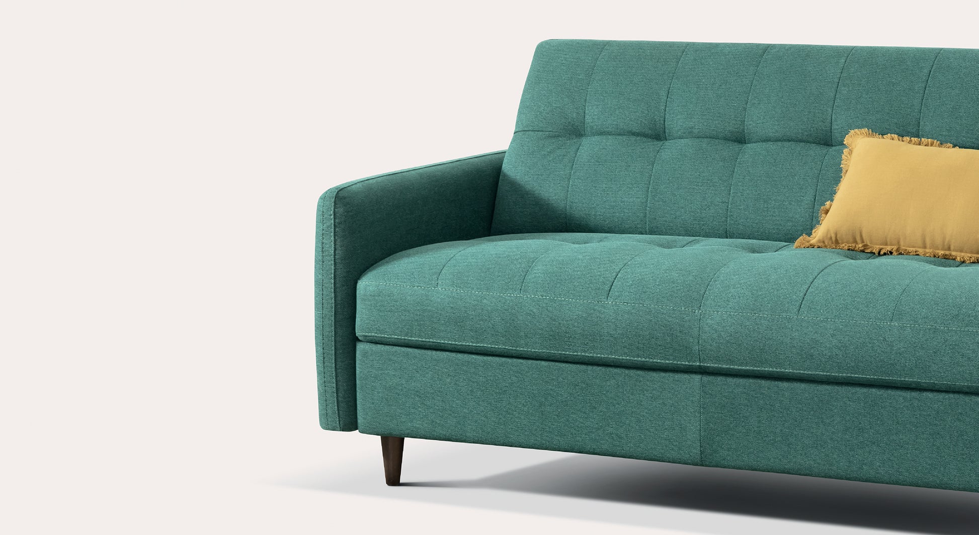 J'ai conçu ce modèle conjuguant la légèreté et le peps d’un design rétro avec un cœur scandinave. Le style du SOHO Fixe réveille votre intérieur par les couleurs en vogue de son revêtement rappelant la fibre du tweed ! Ce modèle design vous séduira par ses piétements en bois et par ses coussins capitonnés.