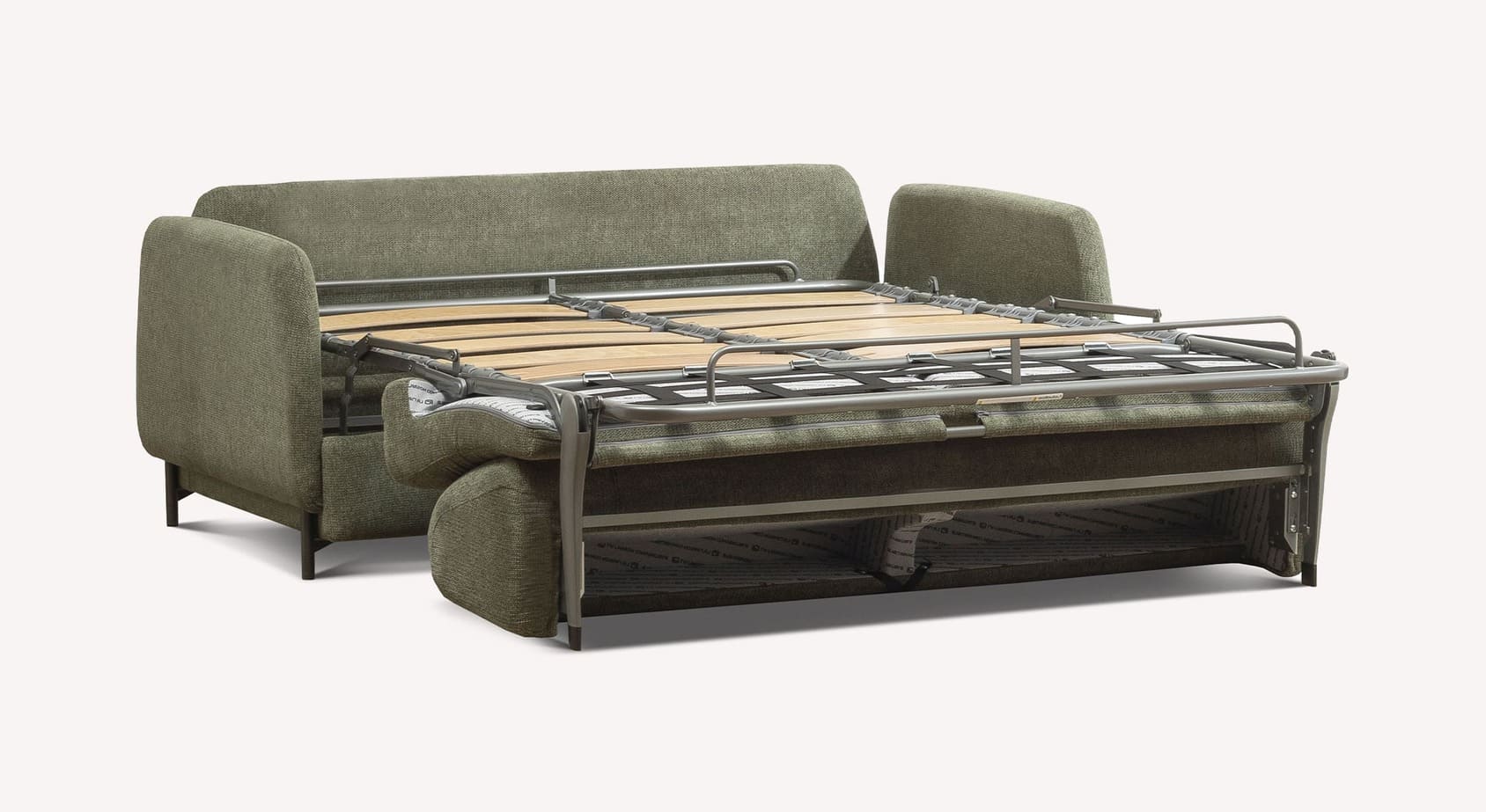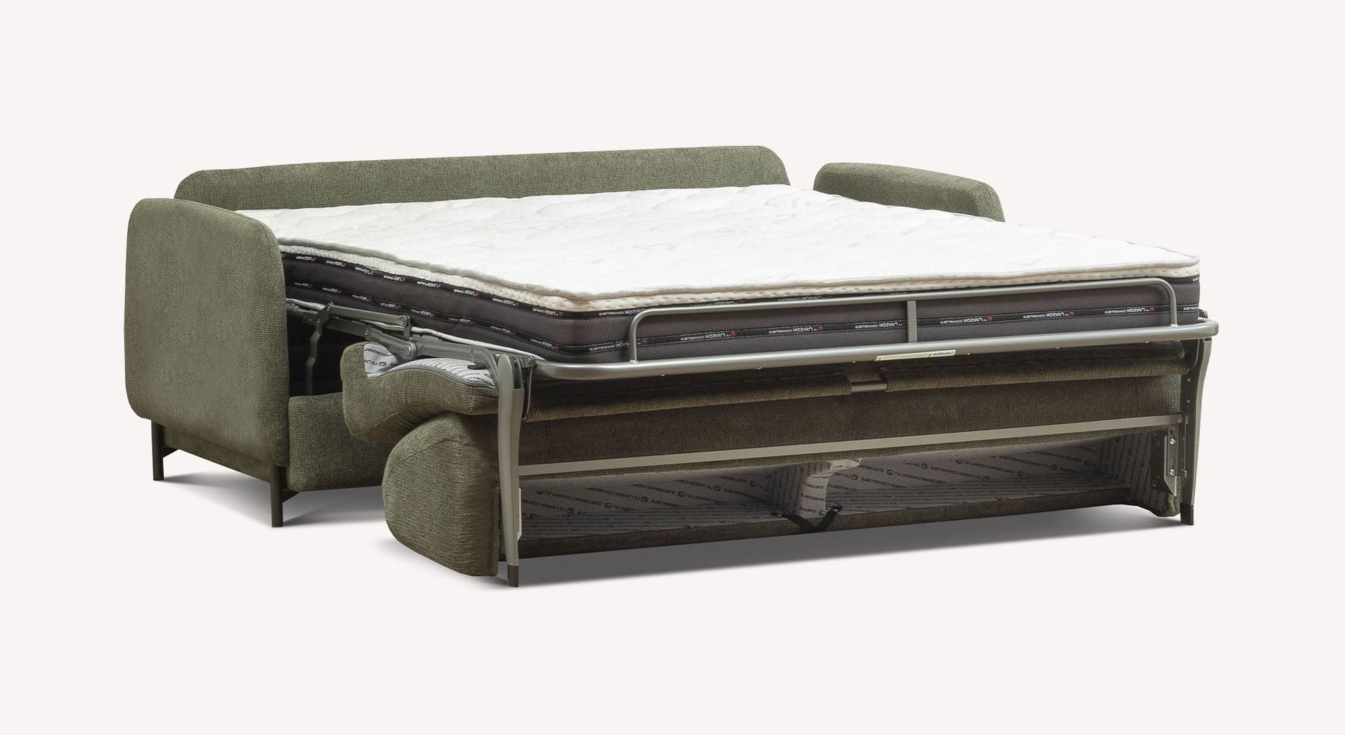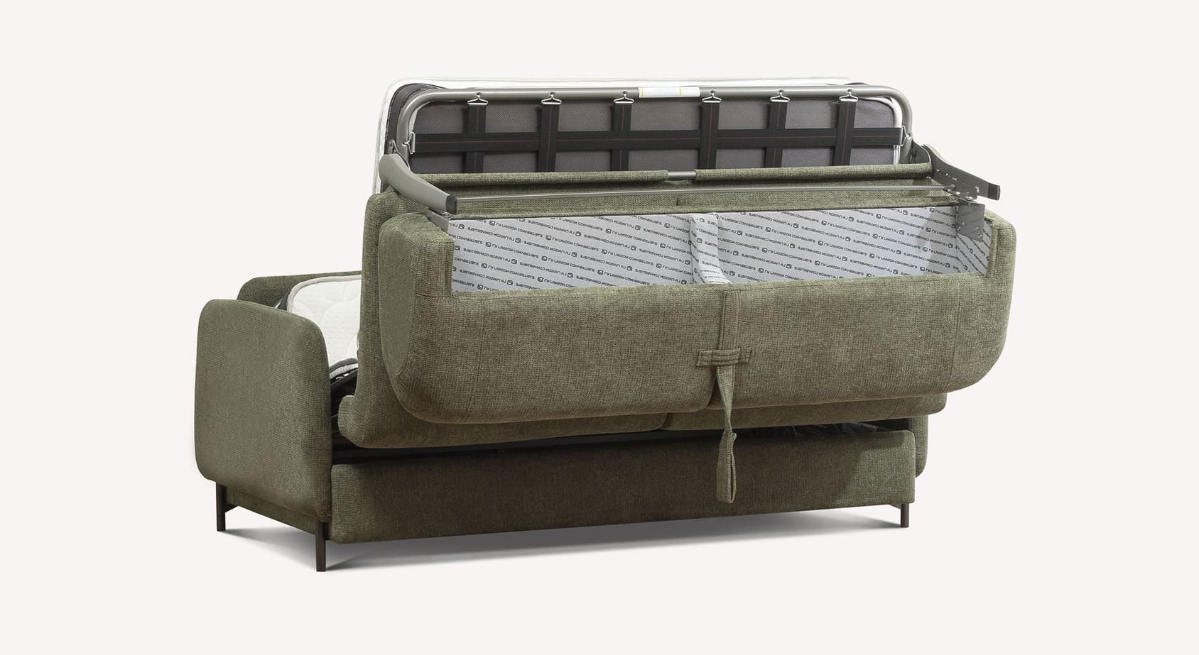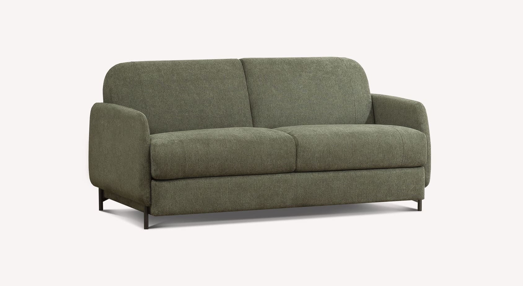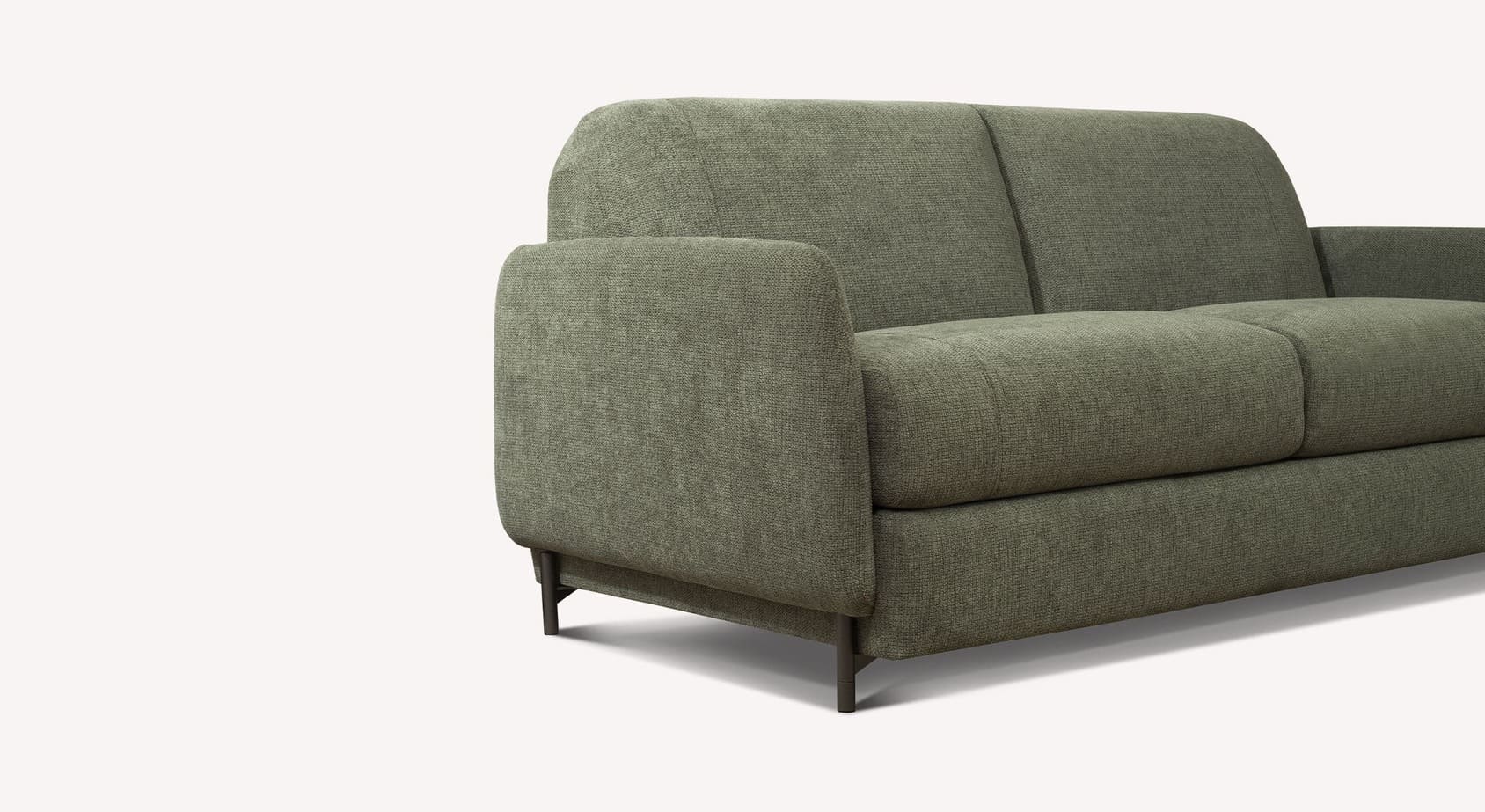 Le canapé convertible ECHO se distingue par son design jeune et innovant, capable de rafraîchir l'esthétique du canapé-lit avec une touche de modernité. Les accoudoirs, légèrement surélevés, laissent apparaître la coque sur tout le périmètre, ce qui confère au produit une impression de légèreté et d'originalité. Les formes douces du dossier et de l'assise semblent reposer délicatement sur une base solide, créant un élégant effet de flottement.