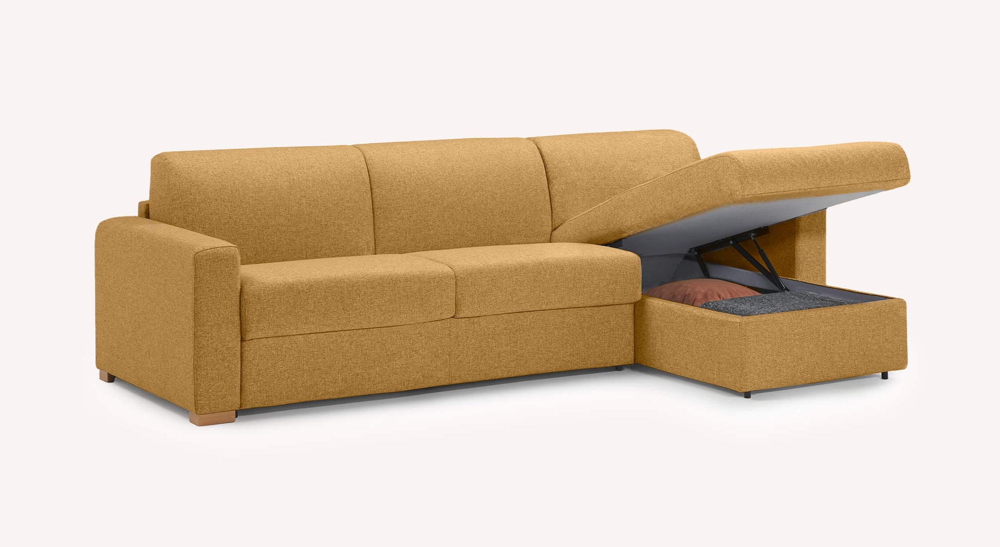 Optez pour le canapé d'angle convertible Jerry avec ses accoudoirs larges. Il sera idéal pour recevoir vos proches dans le confort et la convivialité. Son matelas de 17cm est idéal pour passer des nuits agréables et reposantes.