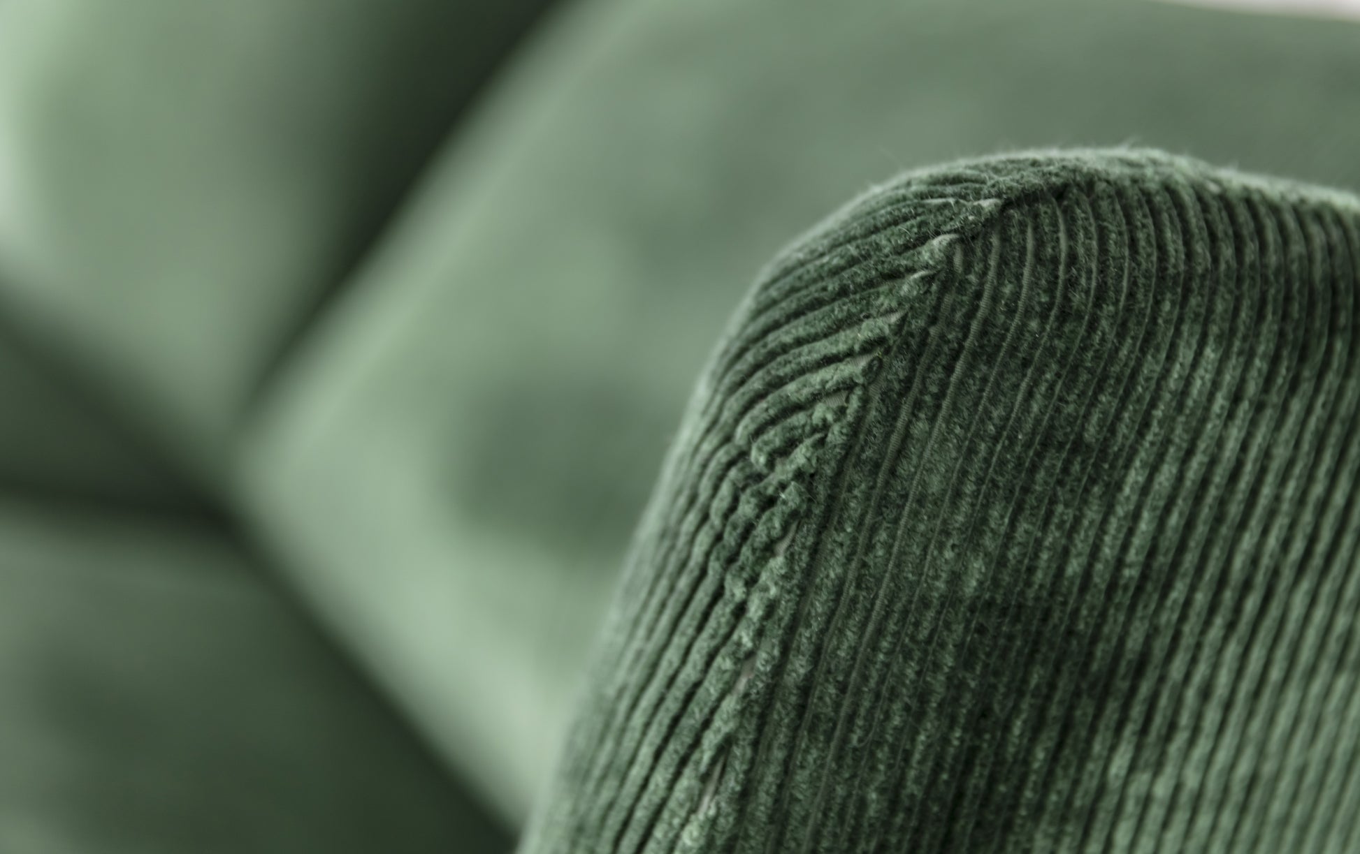 Zoom sur tissu velours côtelé vert bouteille d'un canapé convertible étroit King