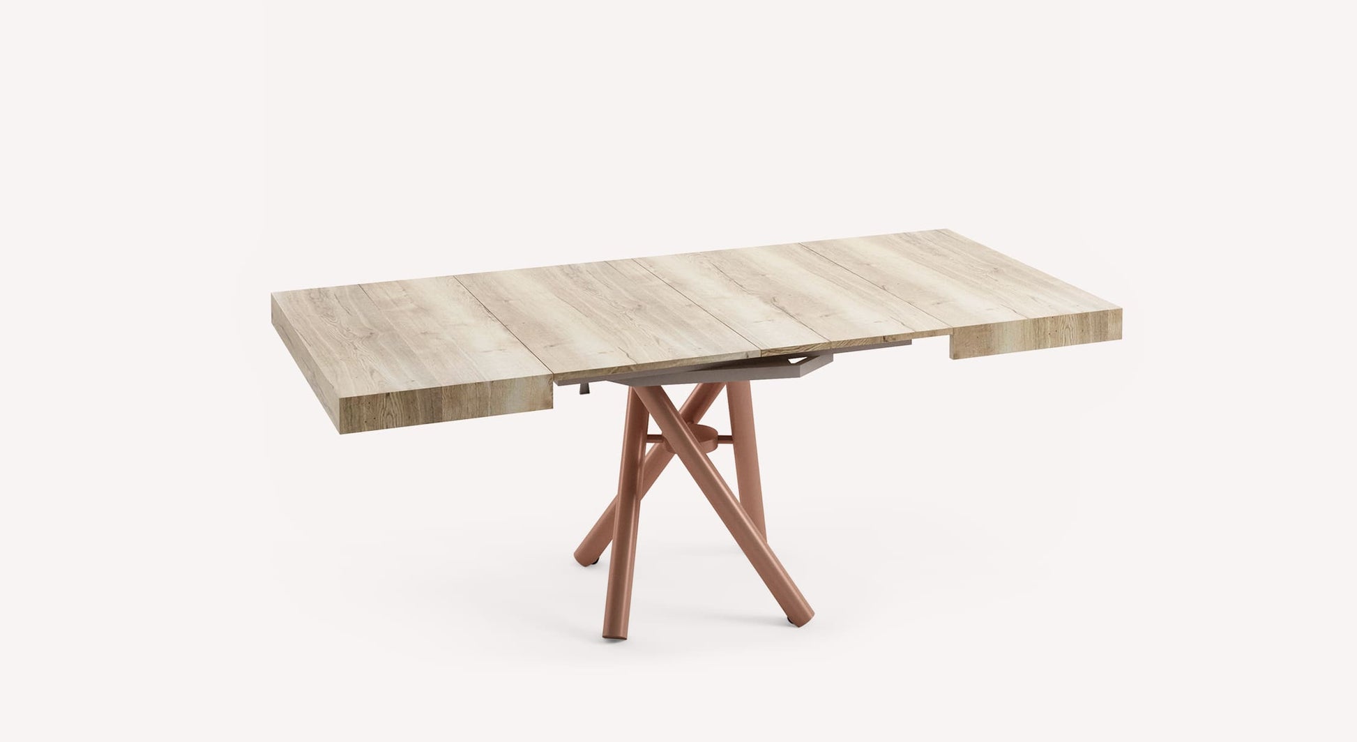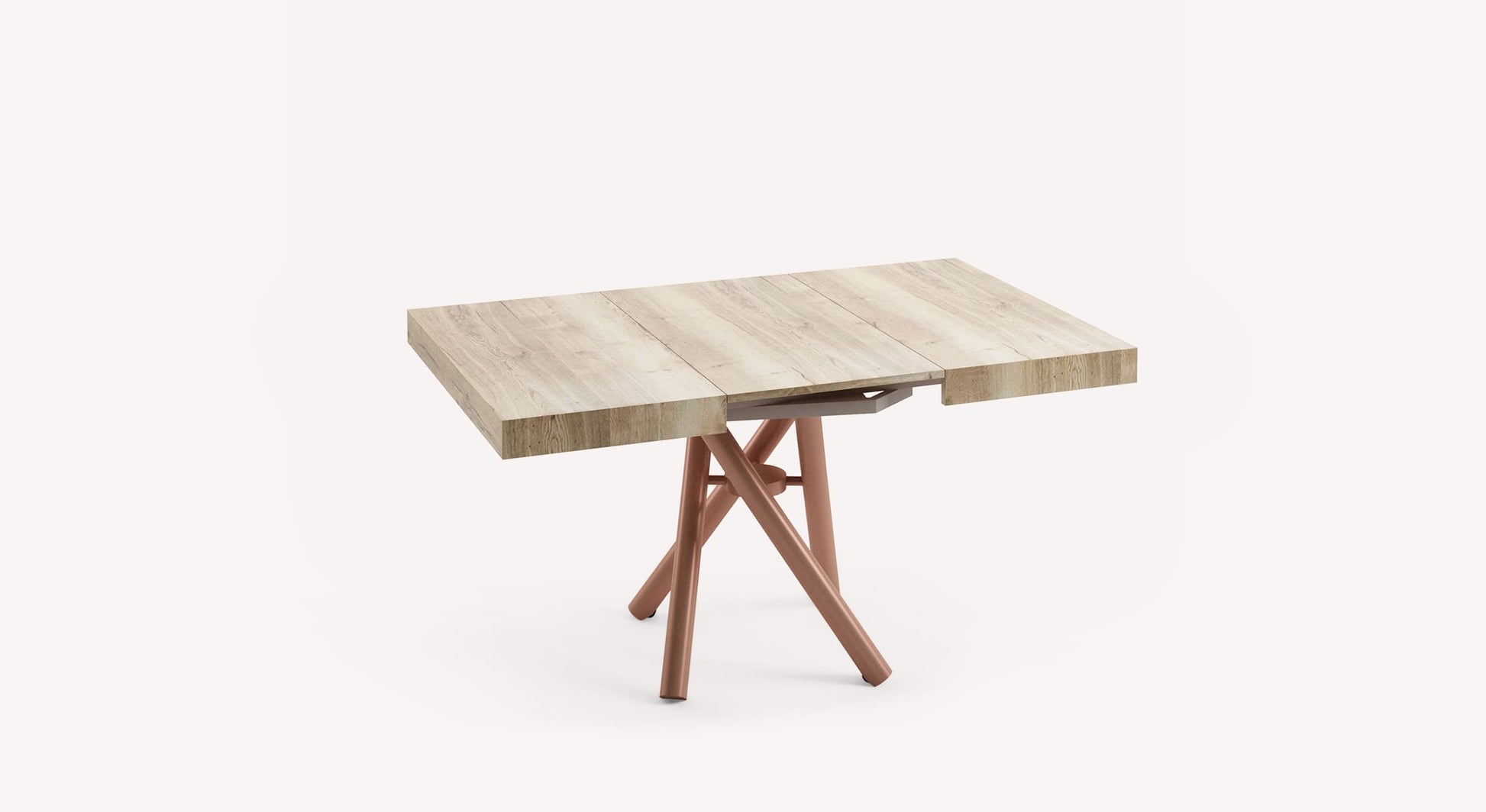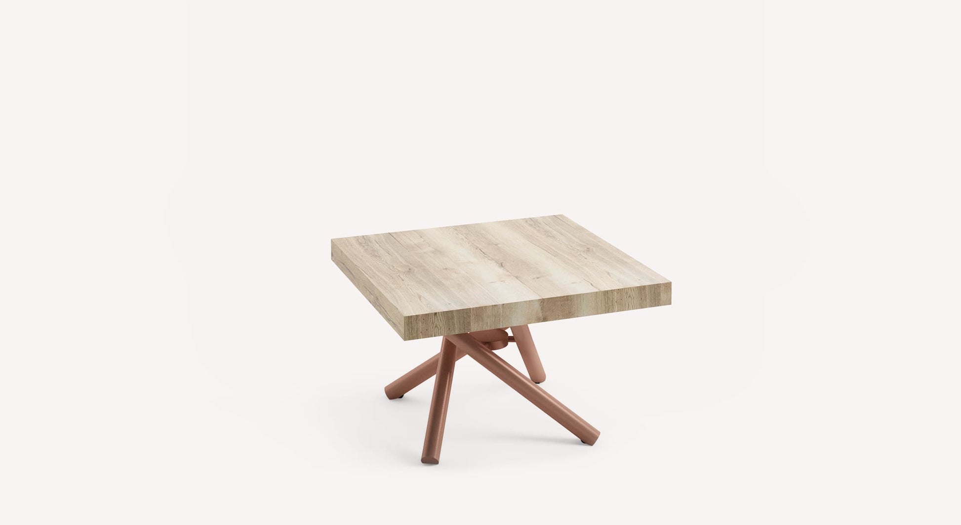 LEVANTE est une table relevable extensible qui combine la particularité de sa structure en métal et la solidité de son plateau épais en chêne vieux. Ce concept embrasse la modernité de la fonction, sans renoncer à l’appel de la nature, si chère à ceux qui aiment la beauté.