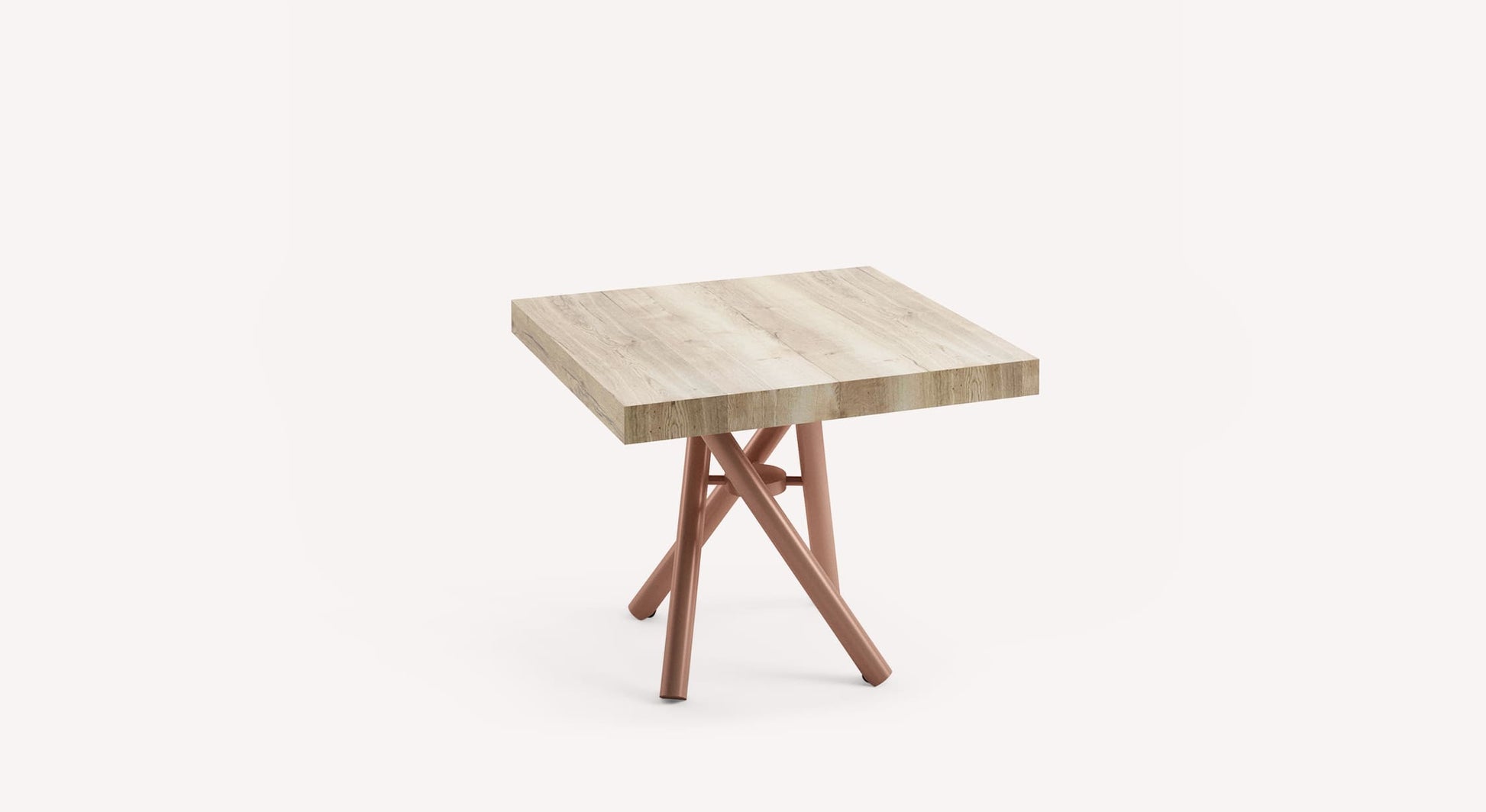 Optez pour le design italien sans pareil de la table LEVANTE, son piétement croisé en métal et son plateau épais et solide. Ce dernier est personnalisable en choisissant entre plusieurs finitions : mélaminé, bois de vieux chêne, effet béton et céramique. A vous de choisir !