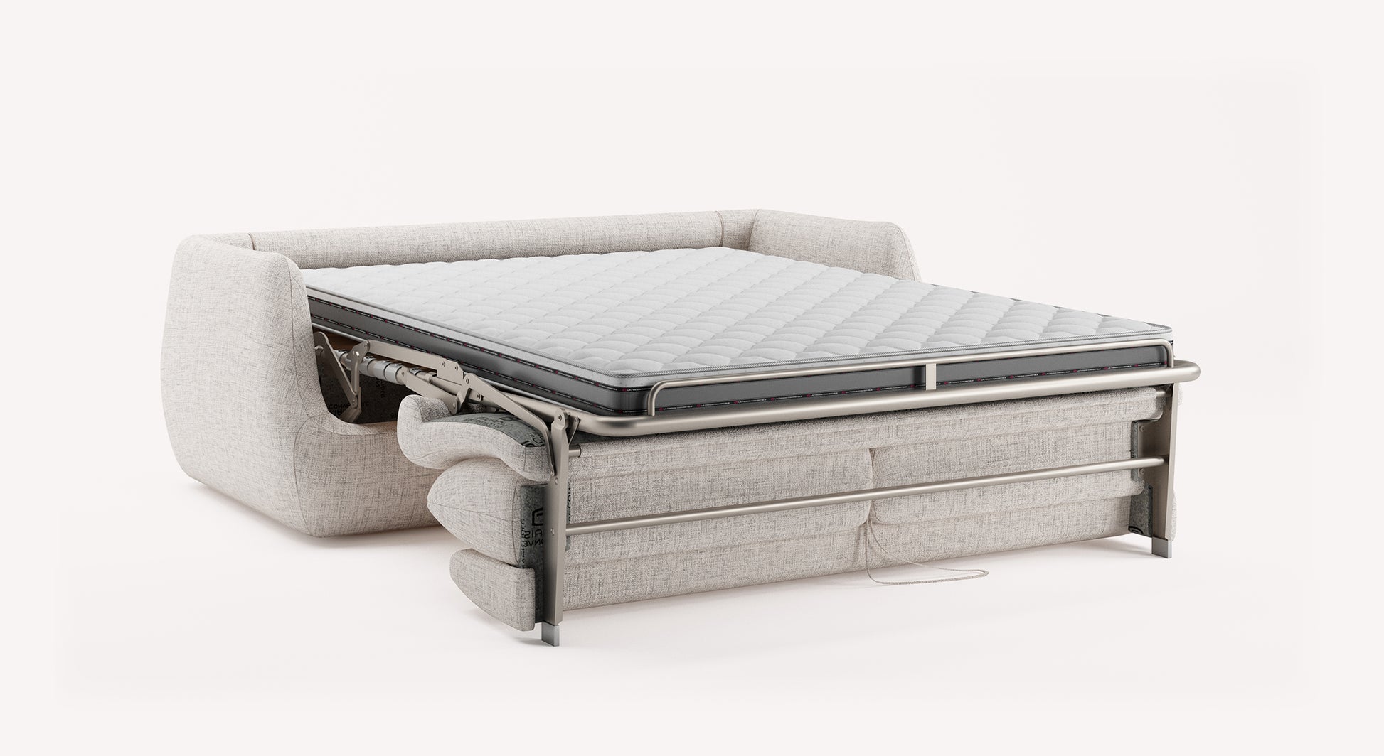 Le Luz est équipé d’un mécanisme d’ouverture rapide et pratique, le Rapido, qui permet de passer du canapé au lit en quelques secondes, sans avoir besoin de retirer les coussins. Idéal pour une utilisation régulière.