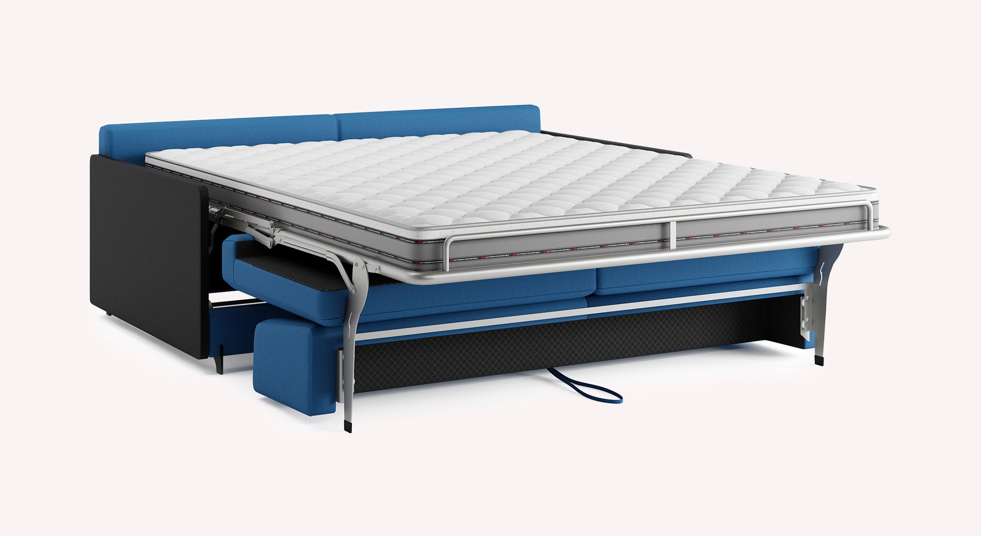 En quelques secondes, grâce au système rapido, il se transforme en un lit véritable composé d'un matelas de 13 cm d'épaisseur et d'un sommier à lattes ou à grilles selon vos préférences. Pouvant faire à la fois office de canapé confortable et de lit, il est le canapé multi-usage idéal. Nos conseillers en magasin seront ravis de vous présenter toutes les configurations possibles ainsi que tous les matelas qui correspondront le mieux à votre confort.