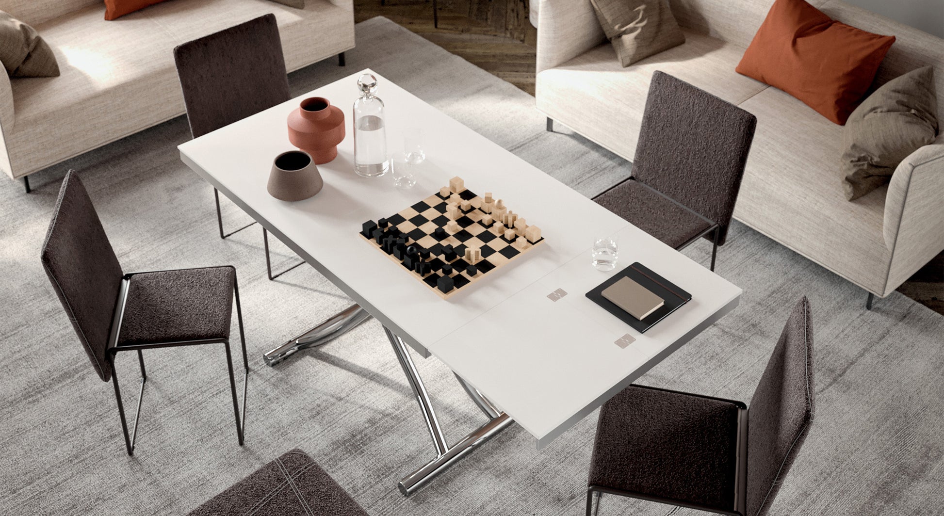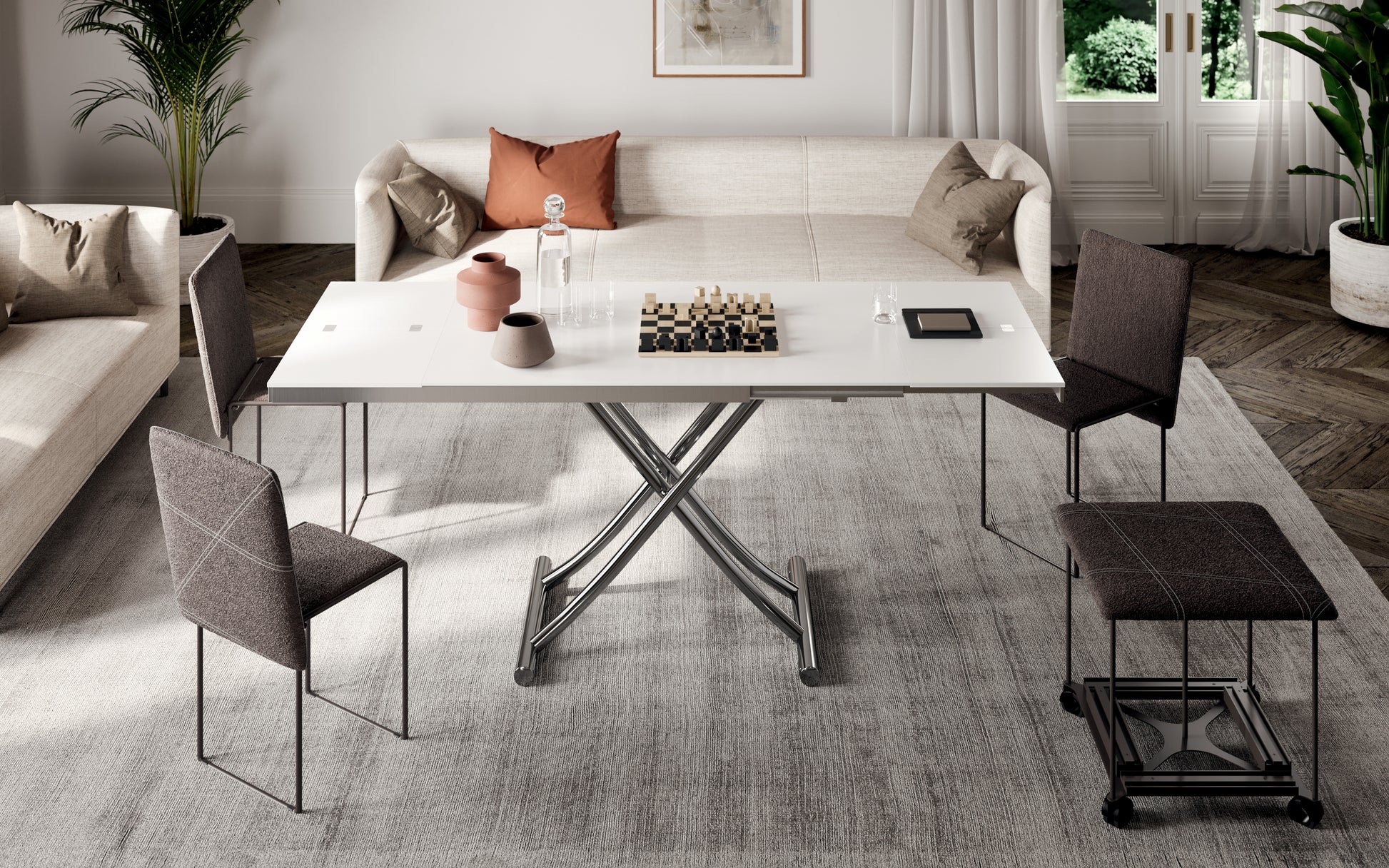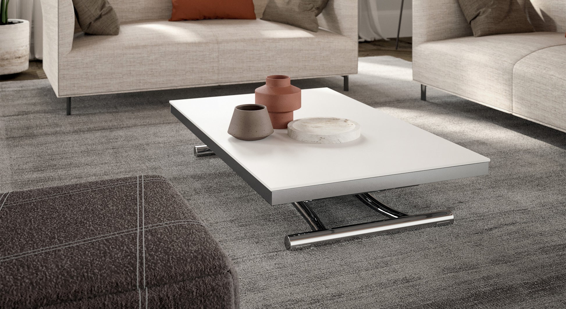 Laissez-vous séduire par la table de salon PLANET à la base en métal, transformable en table à manger. Réglable dans toutes les hauteurs au millimètre près, elle s'adaptera à toutes les circonstances ! Ses roulettes rétractables faciliteront son déplacement.