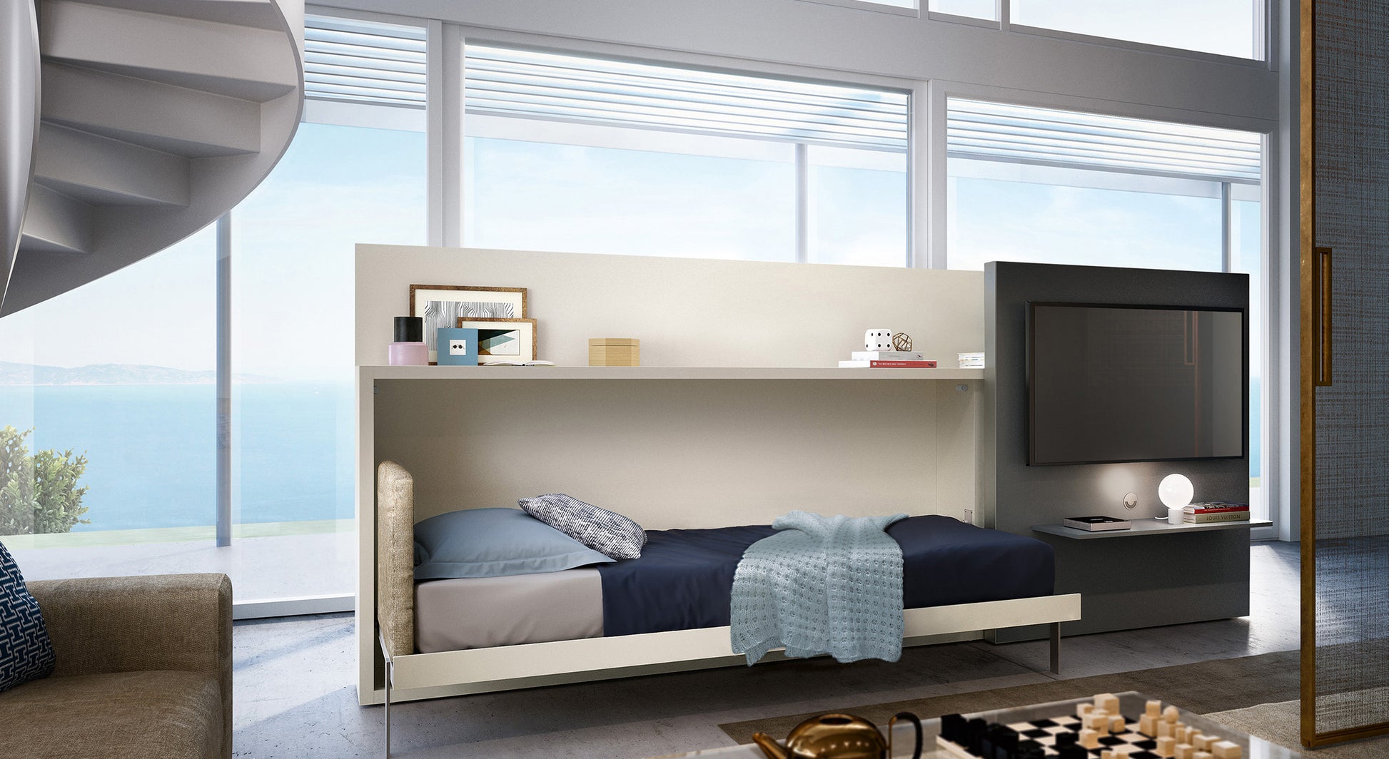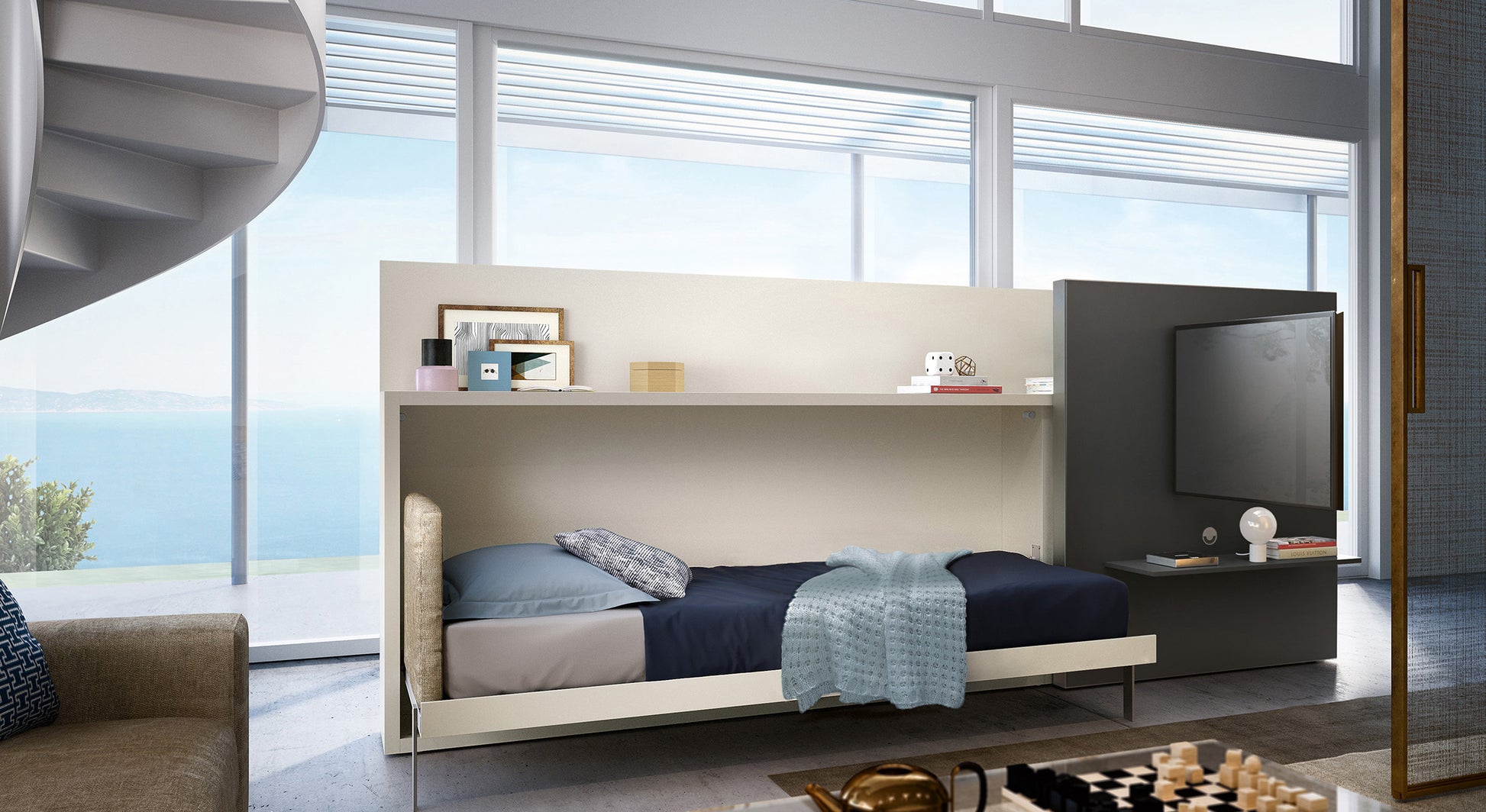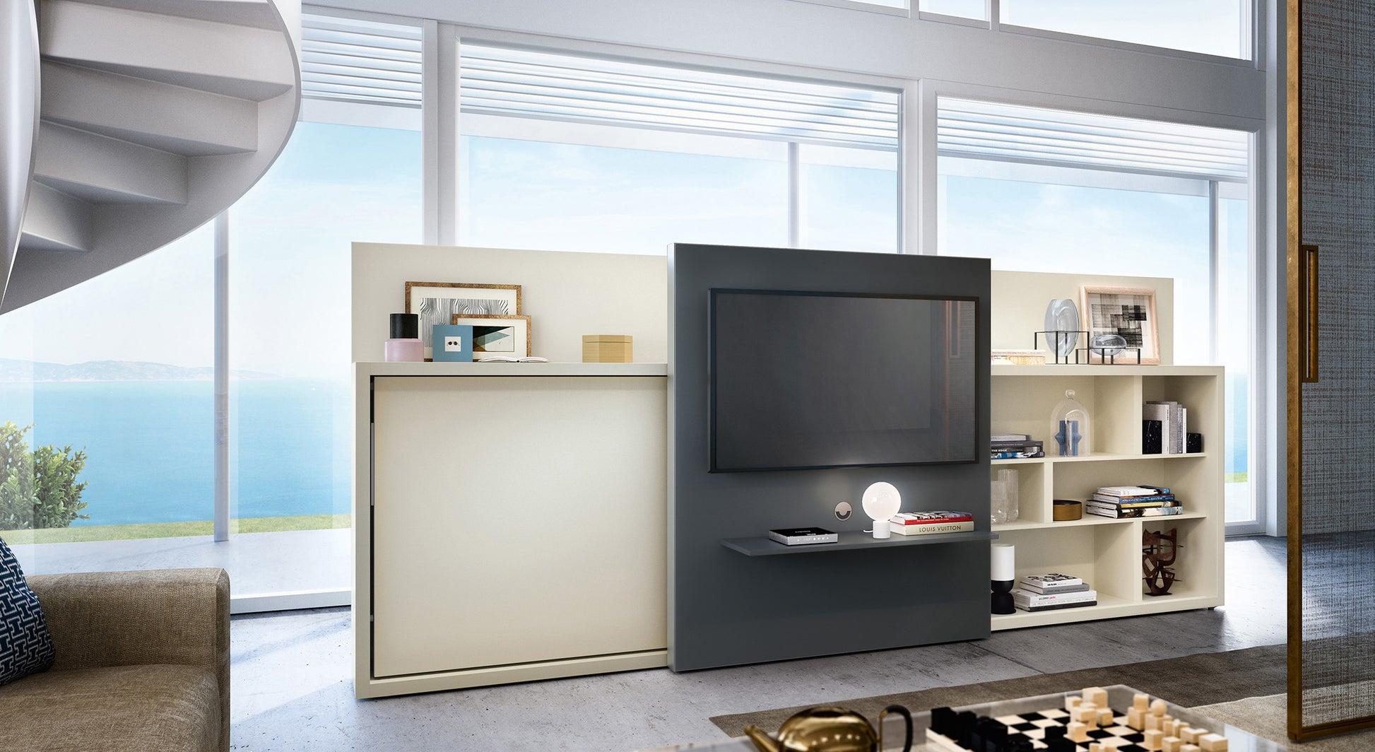 L’armoire lit Poppi Théâtre Meuble TV saura vous séduire grâce à sa simplicité d’utilisation, sa bibliothèque latérale et son panneau coulissant. Personnalisable avec un large choix de coloris et de finitions, elle comblera vos envies déco les plus variées. Explorez les nombreux avantages d'une armoire-lit Poppi Théâtre.