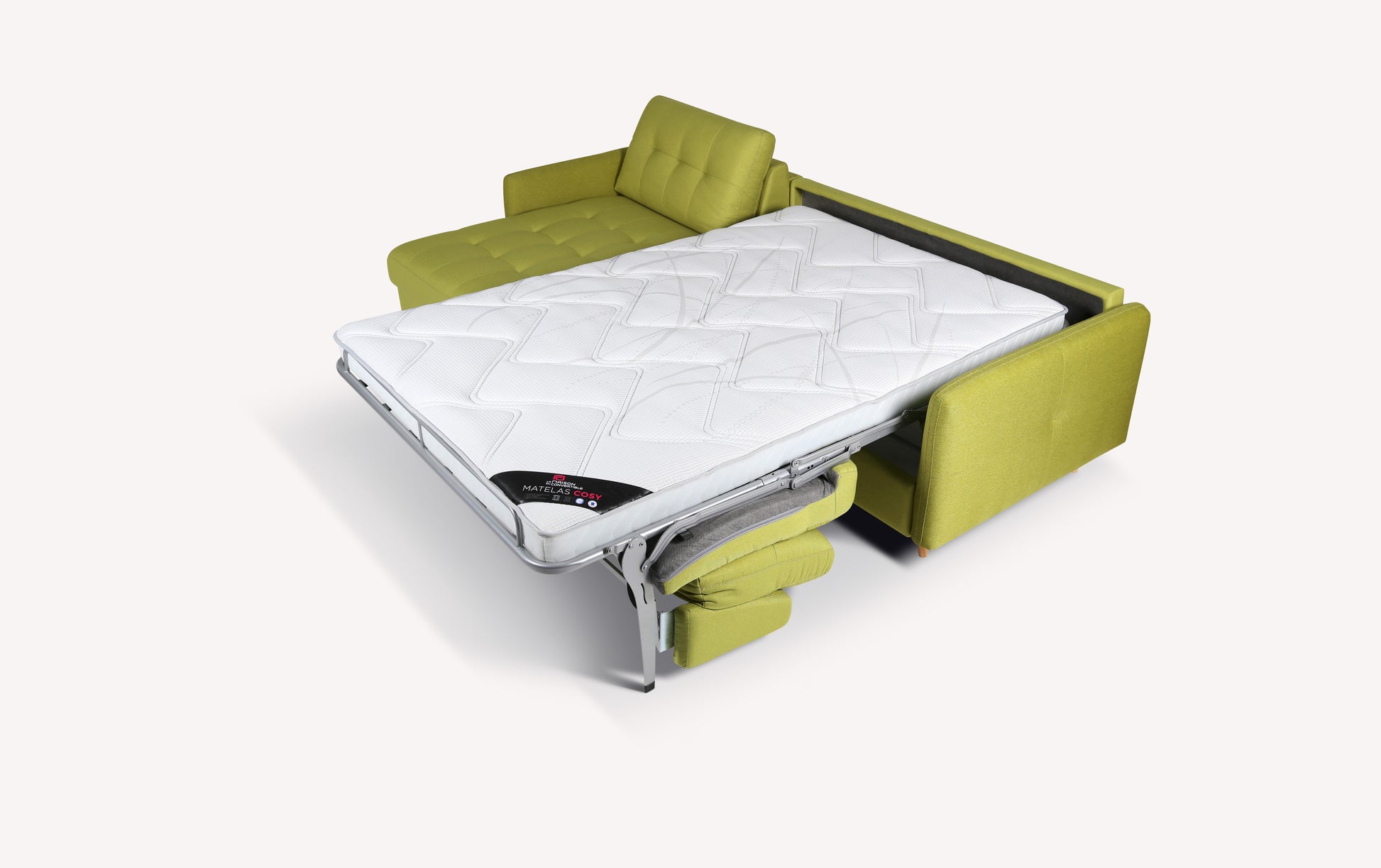 Un confort inégalable : Ce modèle pourvu d'une têtière vous offre un confort optimal. Son assise moelleuse vous promettra d'agréables moments de bien-être de jour. Confirmé par des spécialistes, le matelas de ce canapé lit convertible d'angle garantit un confort maximal pour un couchage nuit après nuit.