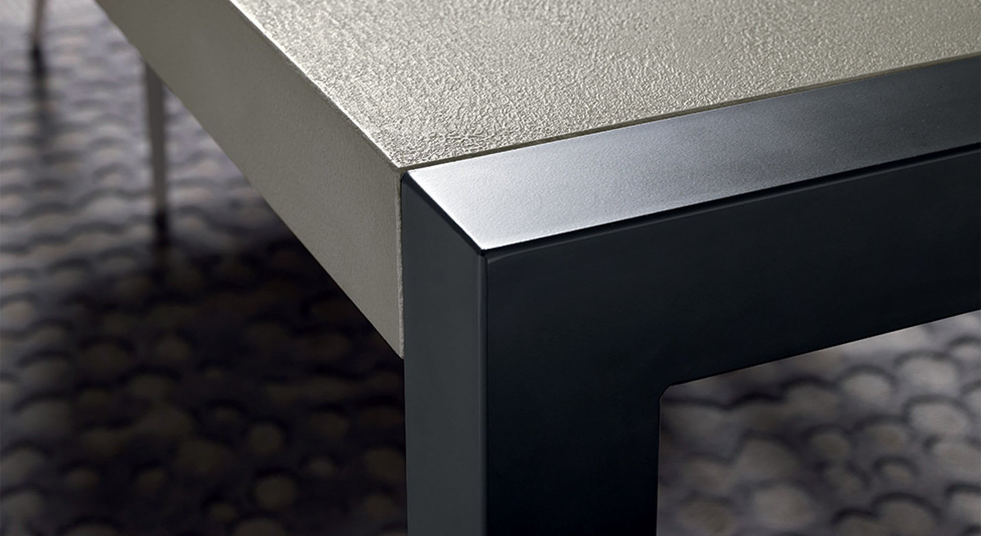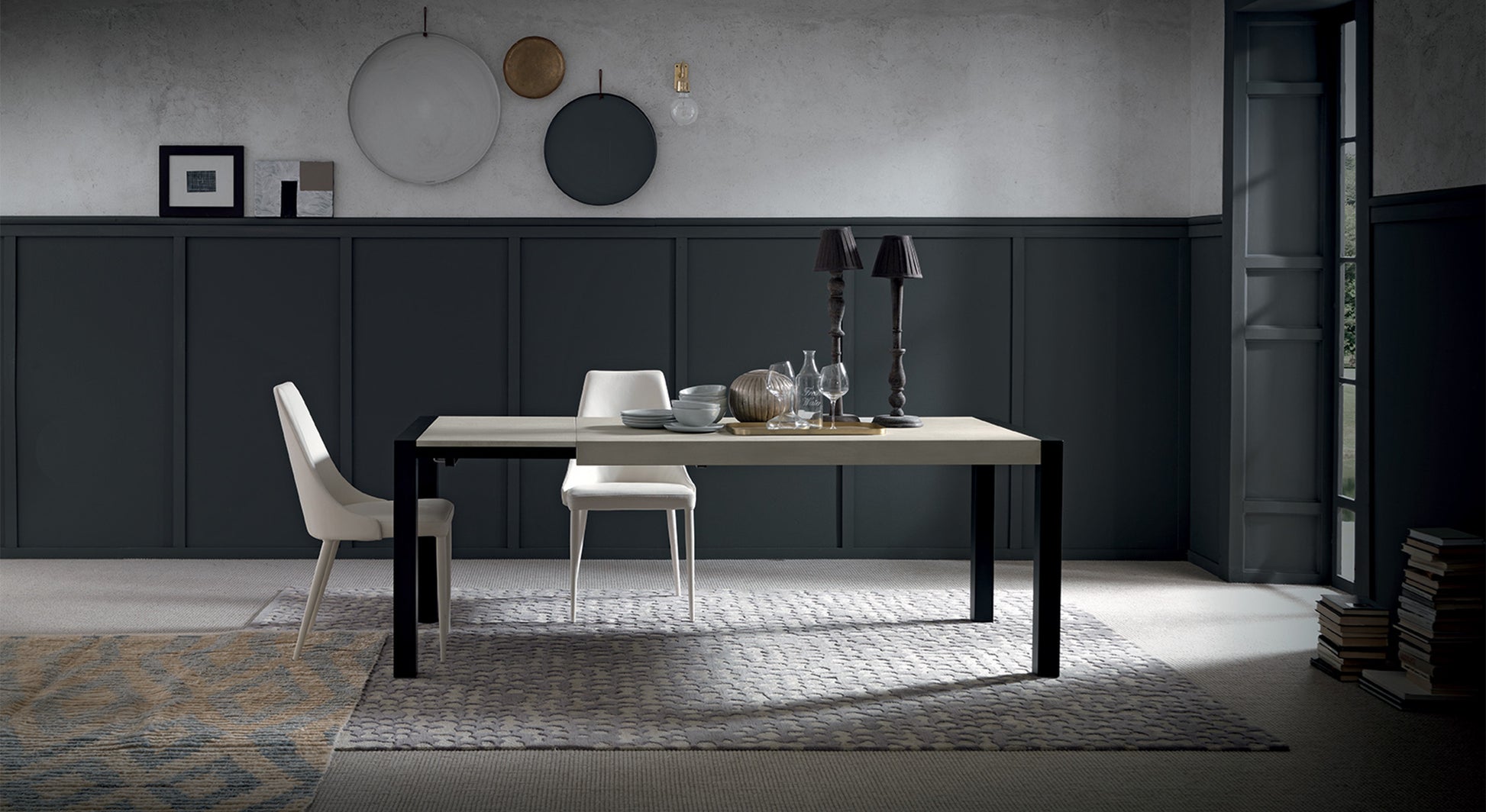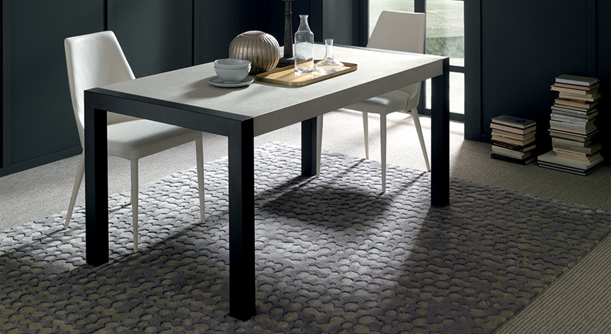 Découvrez la table à manger extensible ARGON dont les géométries rigoureuses de la structure en noir mat mettent l’accent sur le contraste avec son plateau en effet-pierre. Adaptable à tout living ainsi qu’à toute cuisine moderne, elle joue avec classe son rôle d’hôte pour accueillir jusque 14 convives.